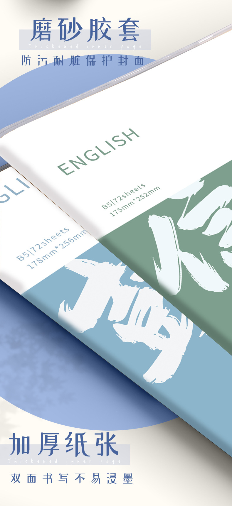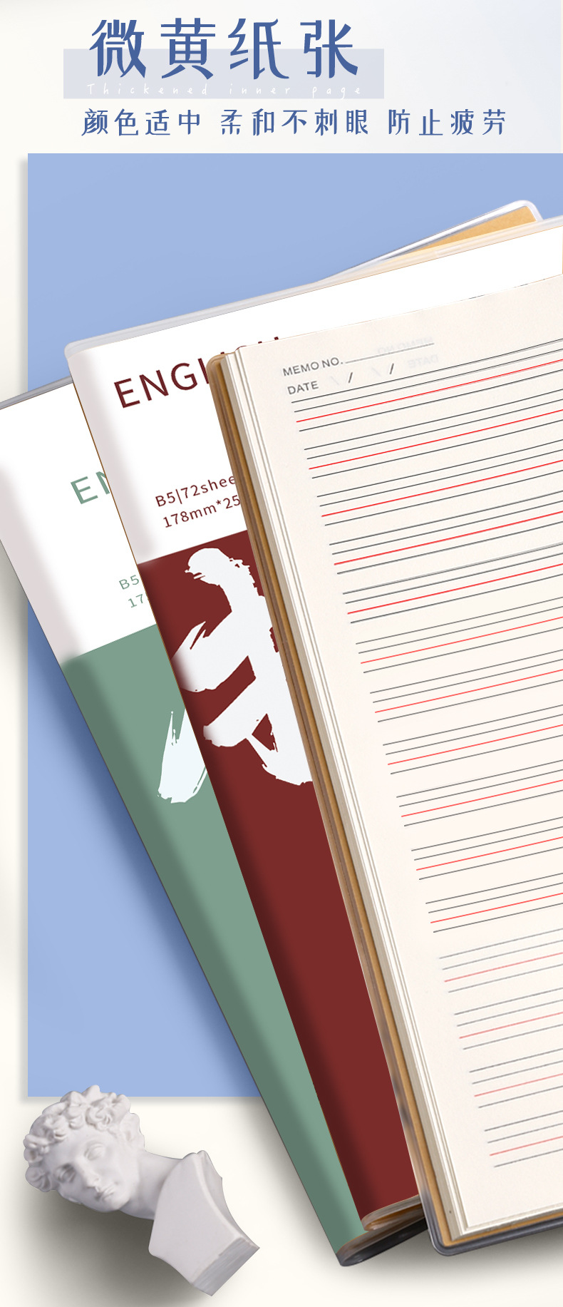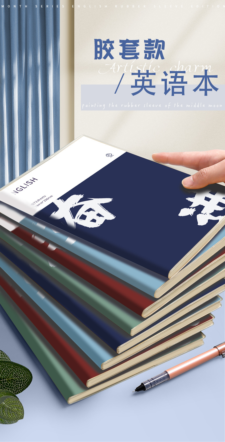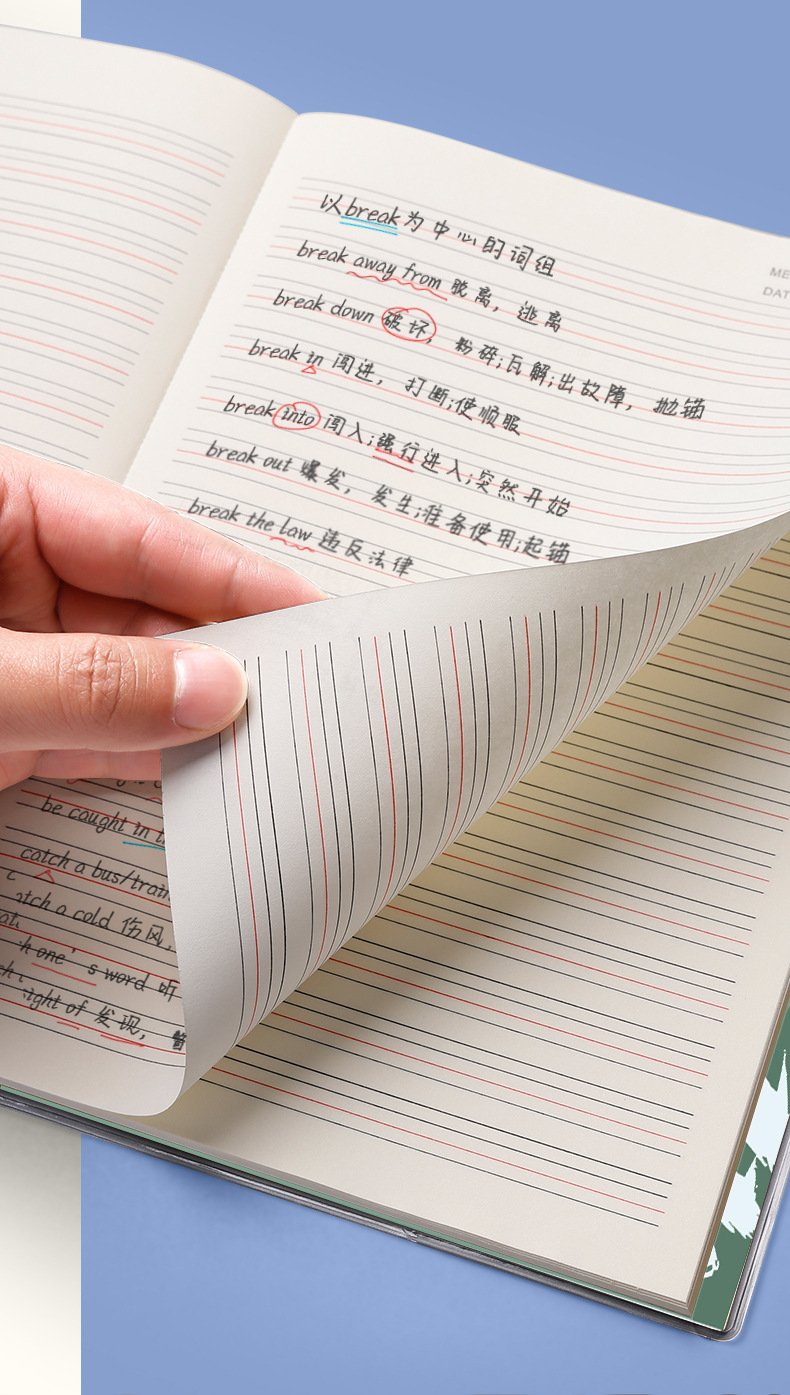 Cuaderno de goma para la piel en inglés engrosado para estudiantes de primaria, secundaria y preparatoria, portátil de tareas retro de alto valor B5