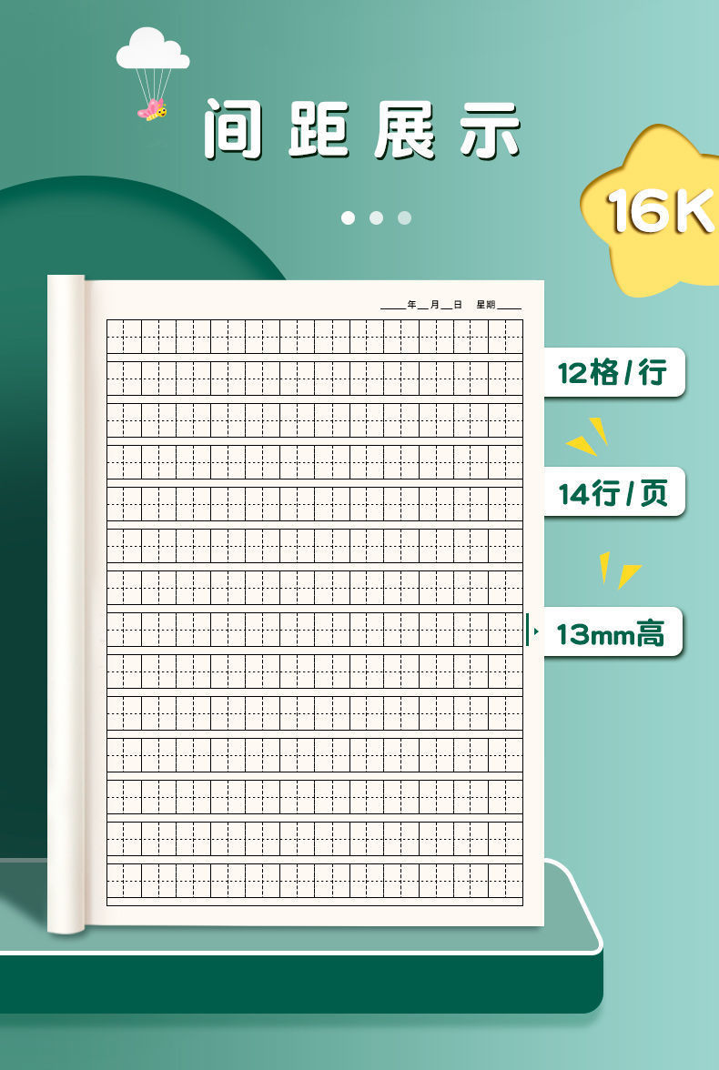 16K Tian Zige libro de práctica de caligrafía Estudiante de escuela primaria Tian Zige escritura Tian Zige estándar nacional de primer grado
