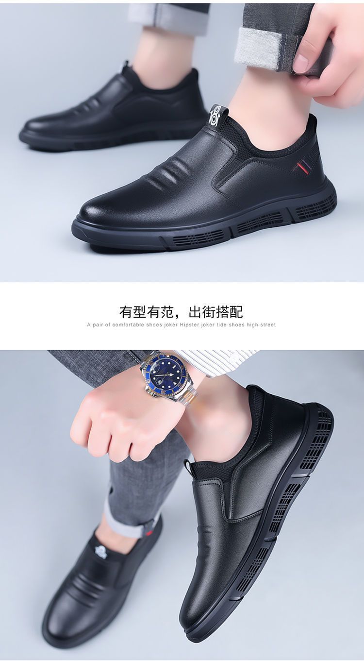 Zapatos de cuero para hombre, zapatos de cuero de suela suave, zapatos de cuero de un pie, zapatos de cuero de trabajo de ocio de negocios perezosos transpirables