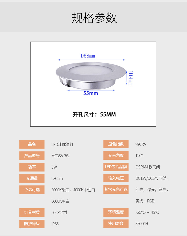 12V/24V incrustado IP65 impermeable oculta pequeña luz redonda LED luz del Gabinete 3W agujero abierto vino gabinete escaparate Luz