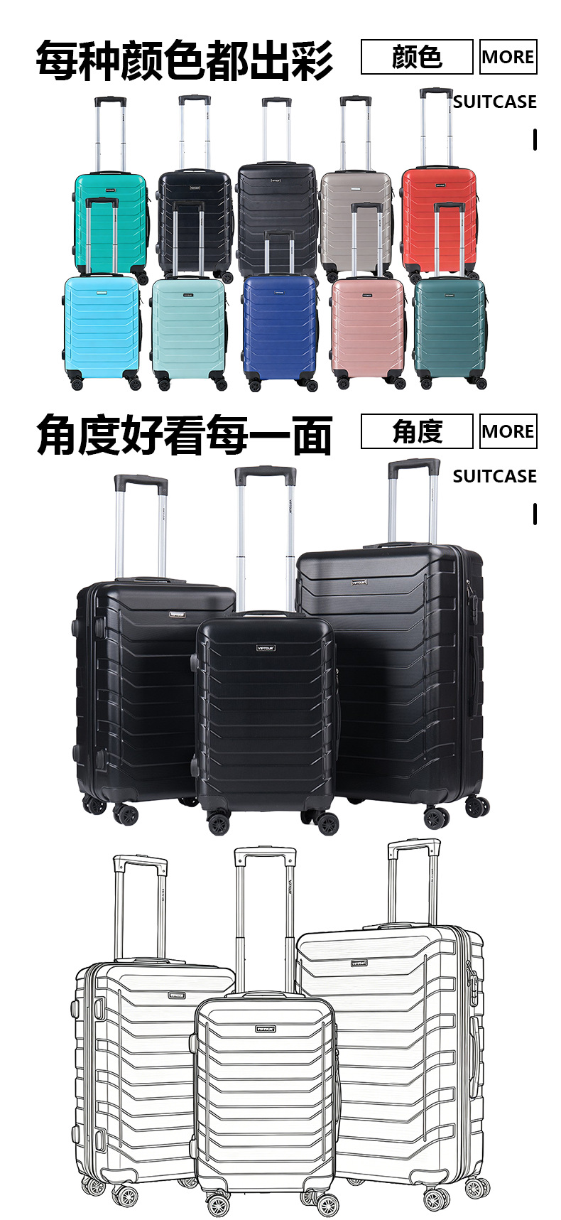 Los fabricantes venden al por mayor el nuevo juego de equipaje multifuncional de tres piezas, caja con ruedas con cremallera de gran capacidad, equipaje grueso resistente a caídas