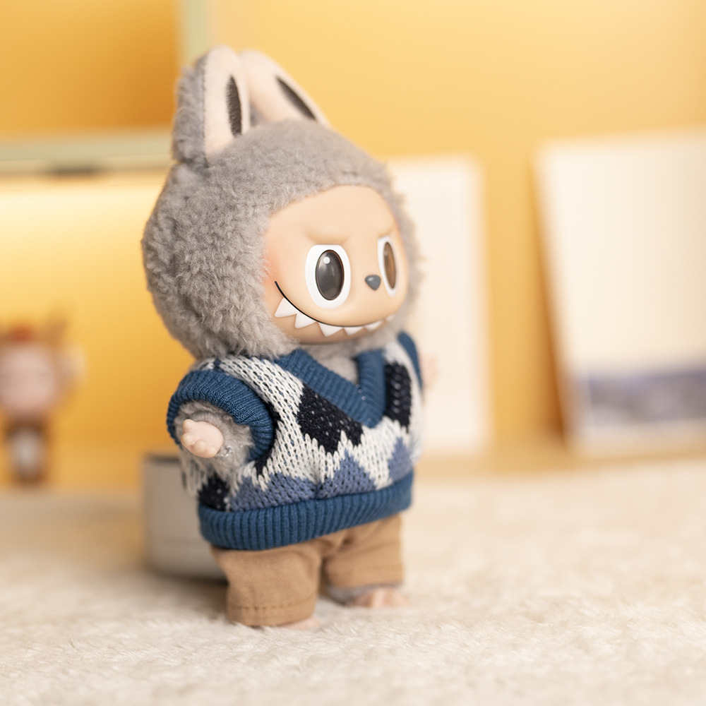 17cm rabu ropa de muñeca de tela traje de suéter británico muñeca labubu moda peluche muñeca vestir