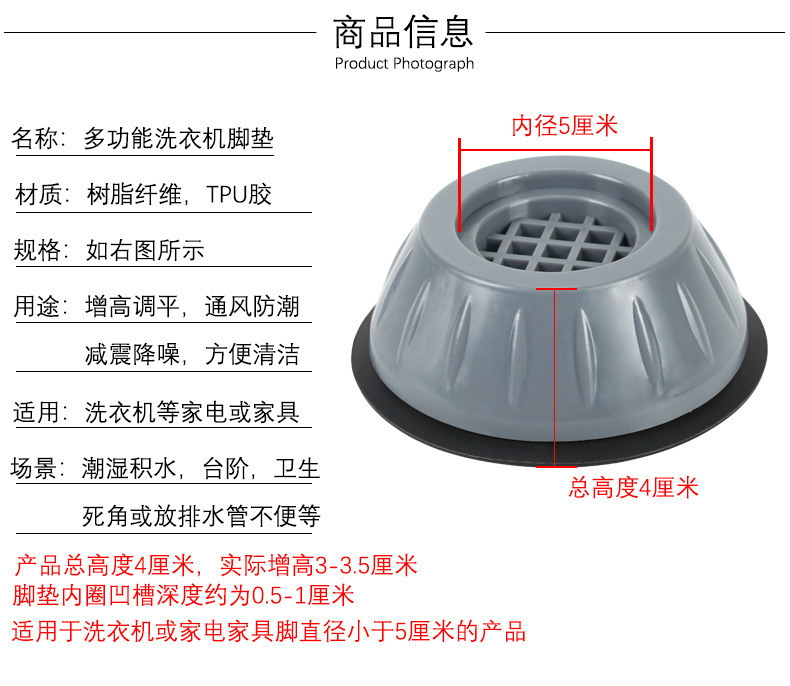 Lavadora, refrigerador, muebles, almohadillas para los pies, plástico, silicona, amortiguación, a prueba de humedad, antideslizante, aumento general, silencio, venta al por mayor automática
