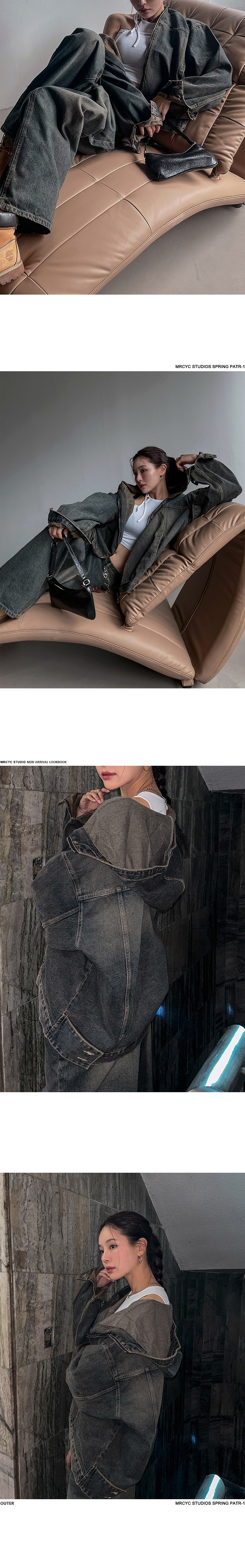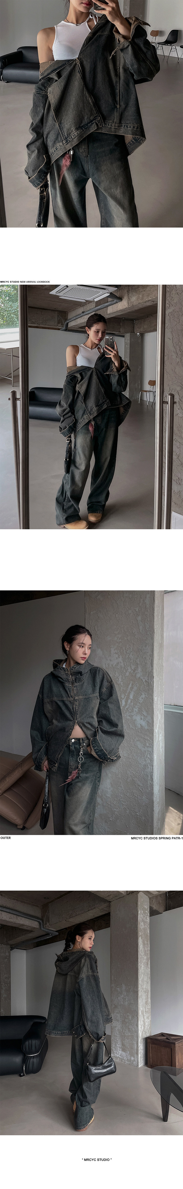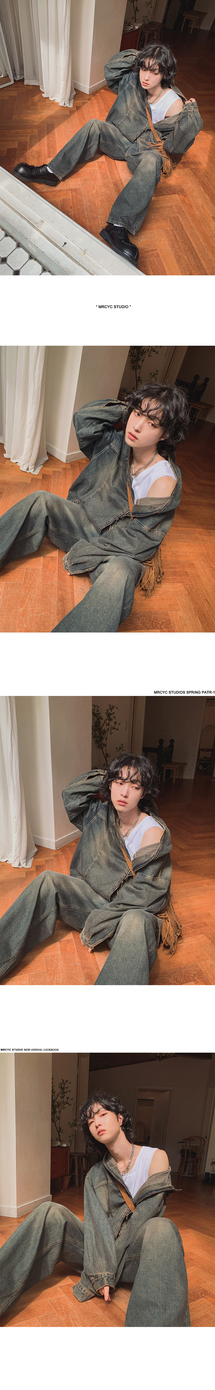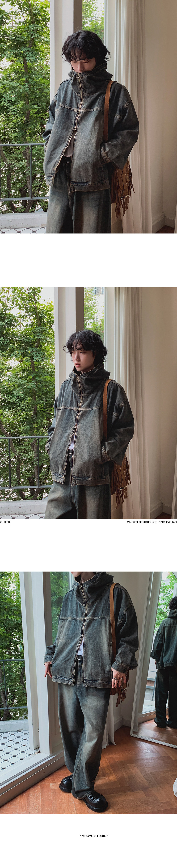 MYQ otoño retro viejo traje de mezclilla chaqueta con capucha suelta para hombre jeans rectos de moda coreana