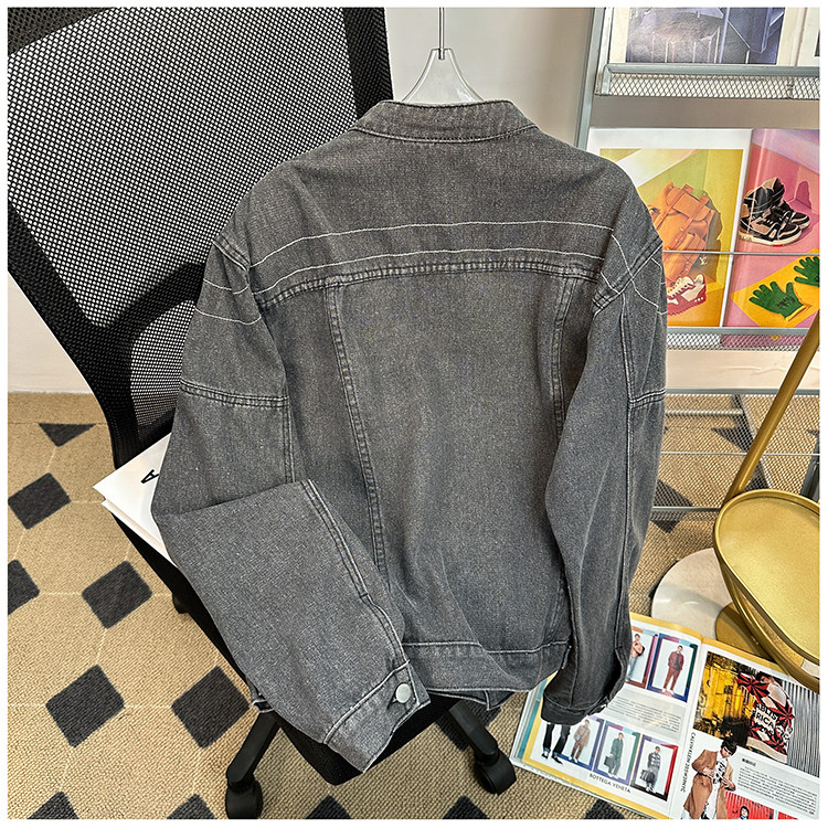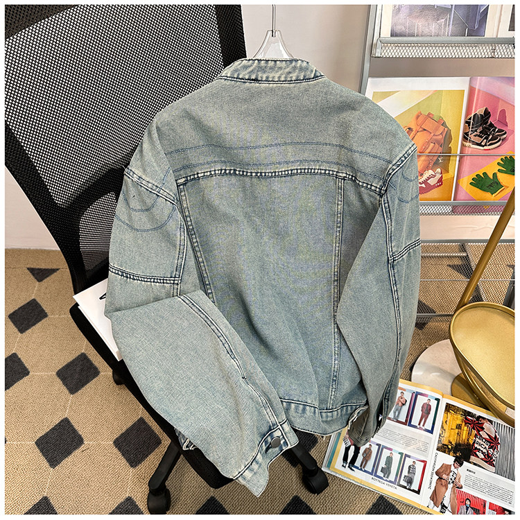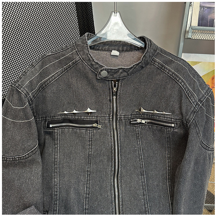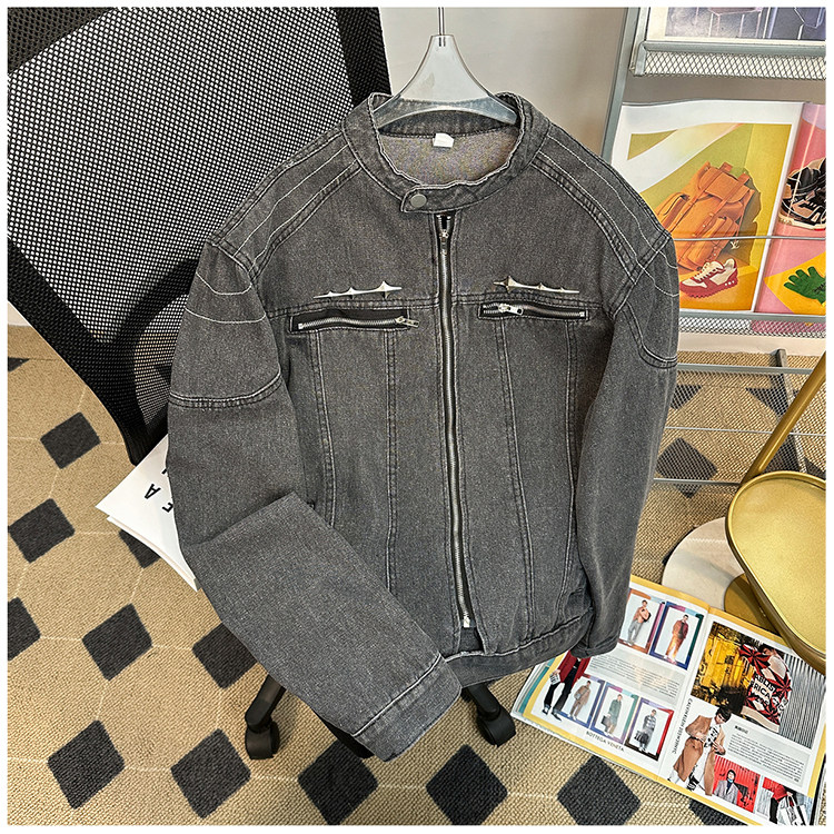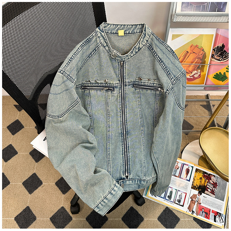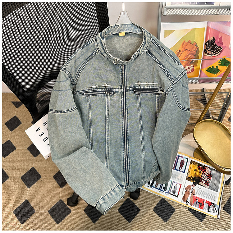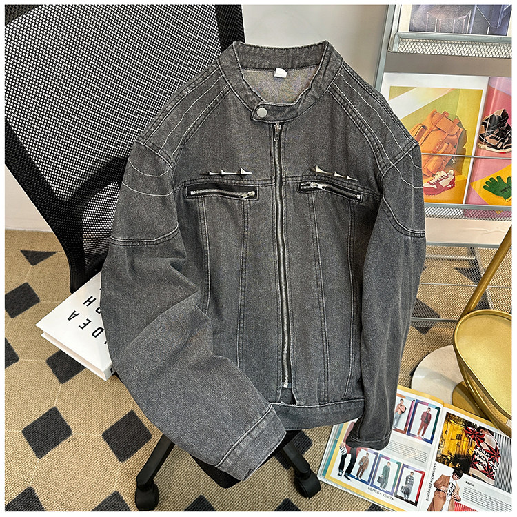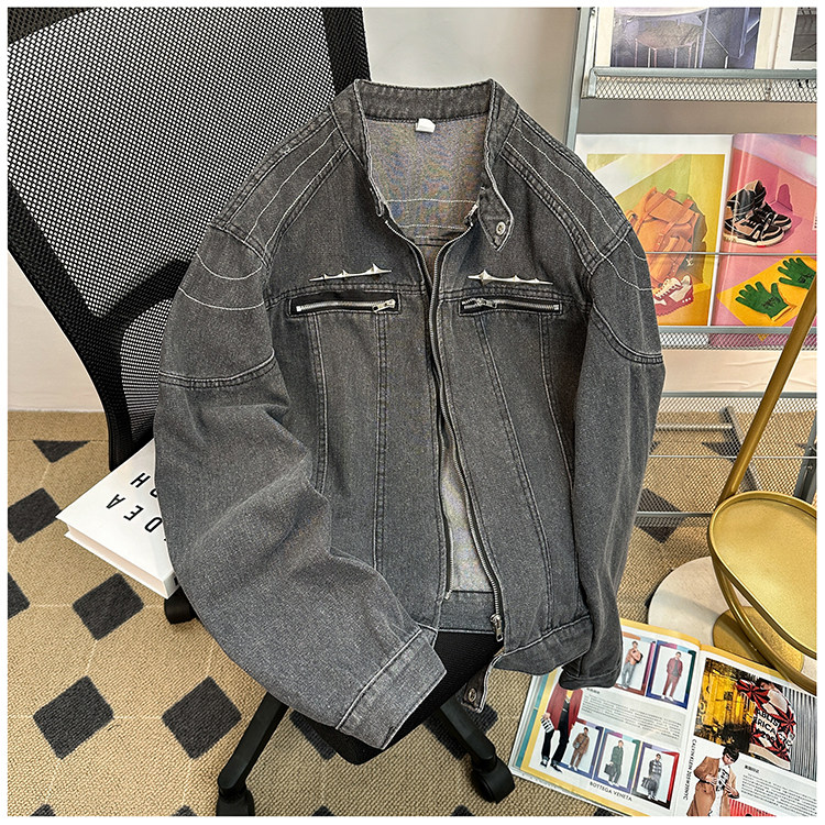 Chaqueta de mezclilla retro americana para hombre, chaqueta suelta de marca de moda de primavera y otoño, diseño de nicho, chaqueta de herramientas con cremallera