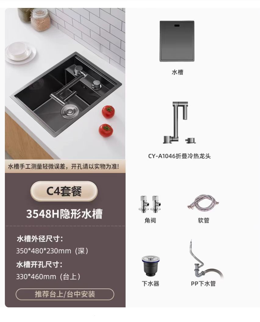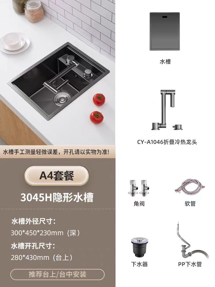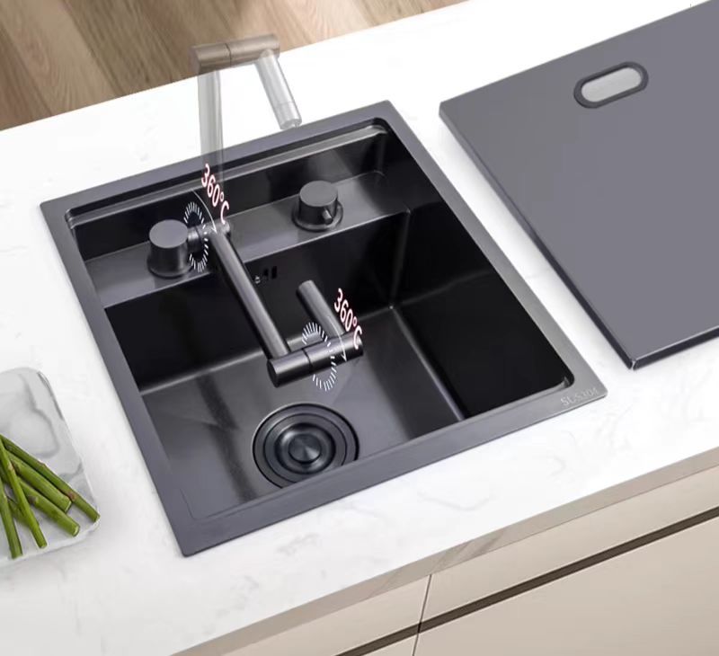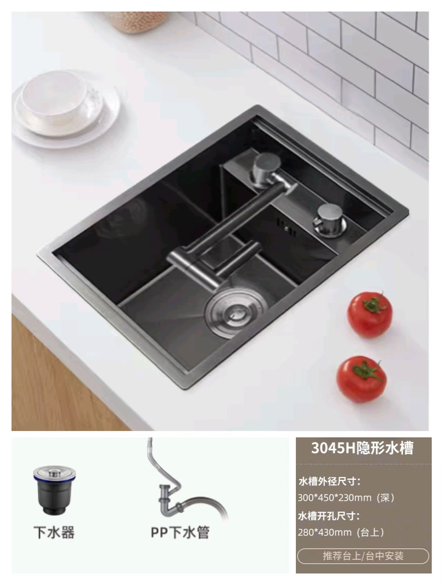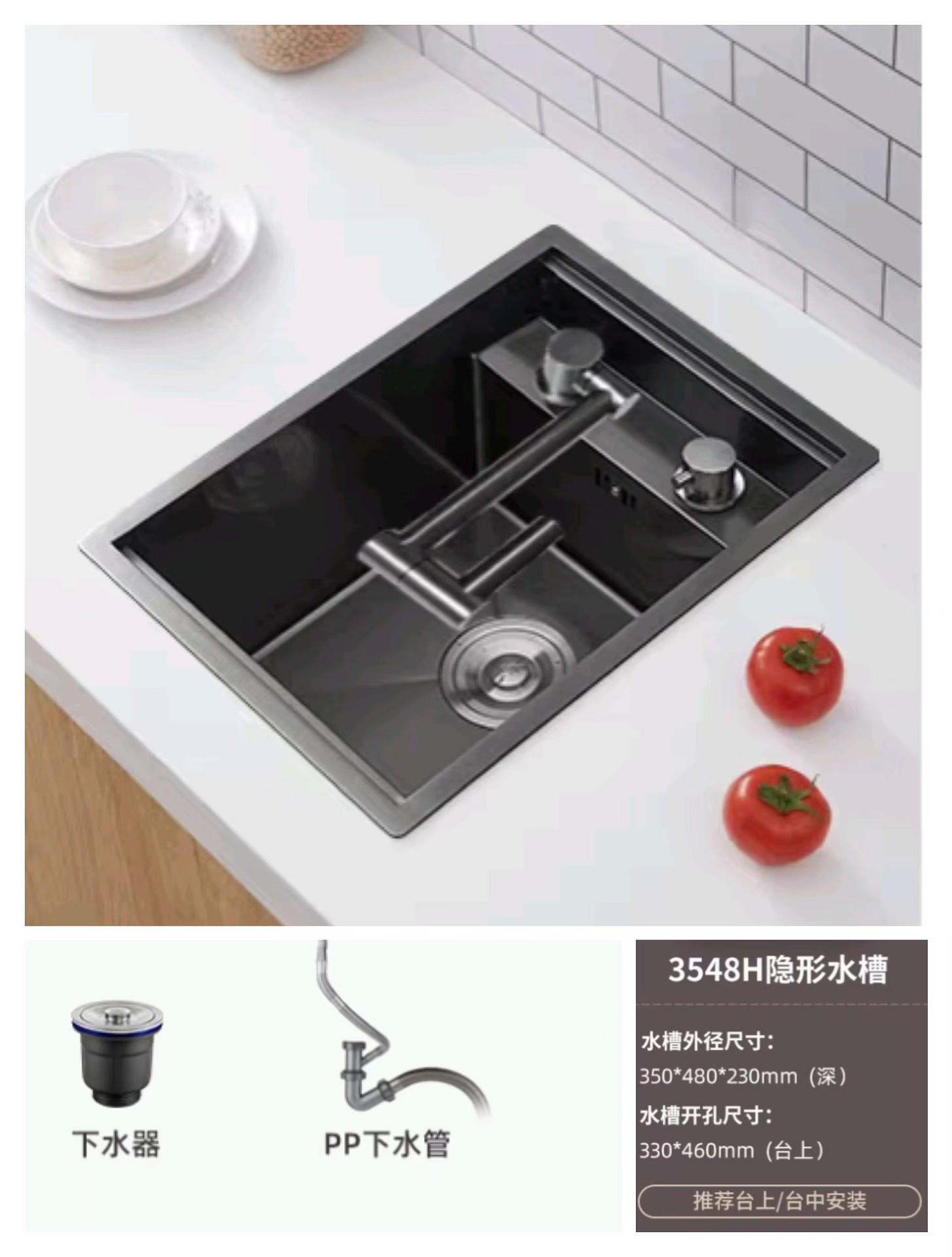Fregadero invisible de acero inoxidable 304, tanque único, nano negro oculto, mesa de bar, lavabo para verduras, mini piscina