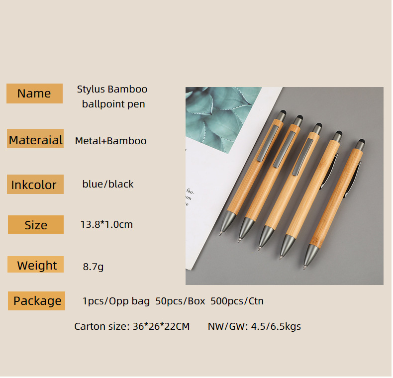 Bolígrafo de bambú táctil, bolígrafo capacitivo, logotipo de grabado, bolígrafo de bambú y madera, bolígrafo de promoción de regalos publicitarios, fabricante de bolígrafos al por mayor