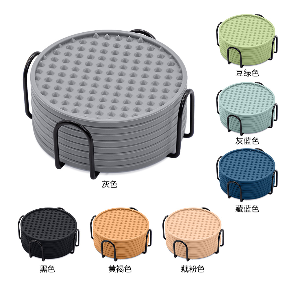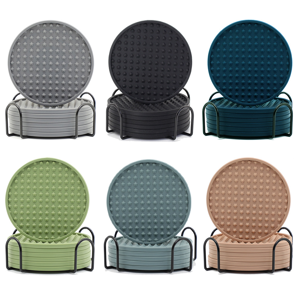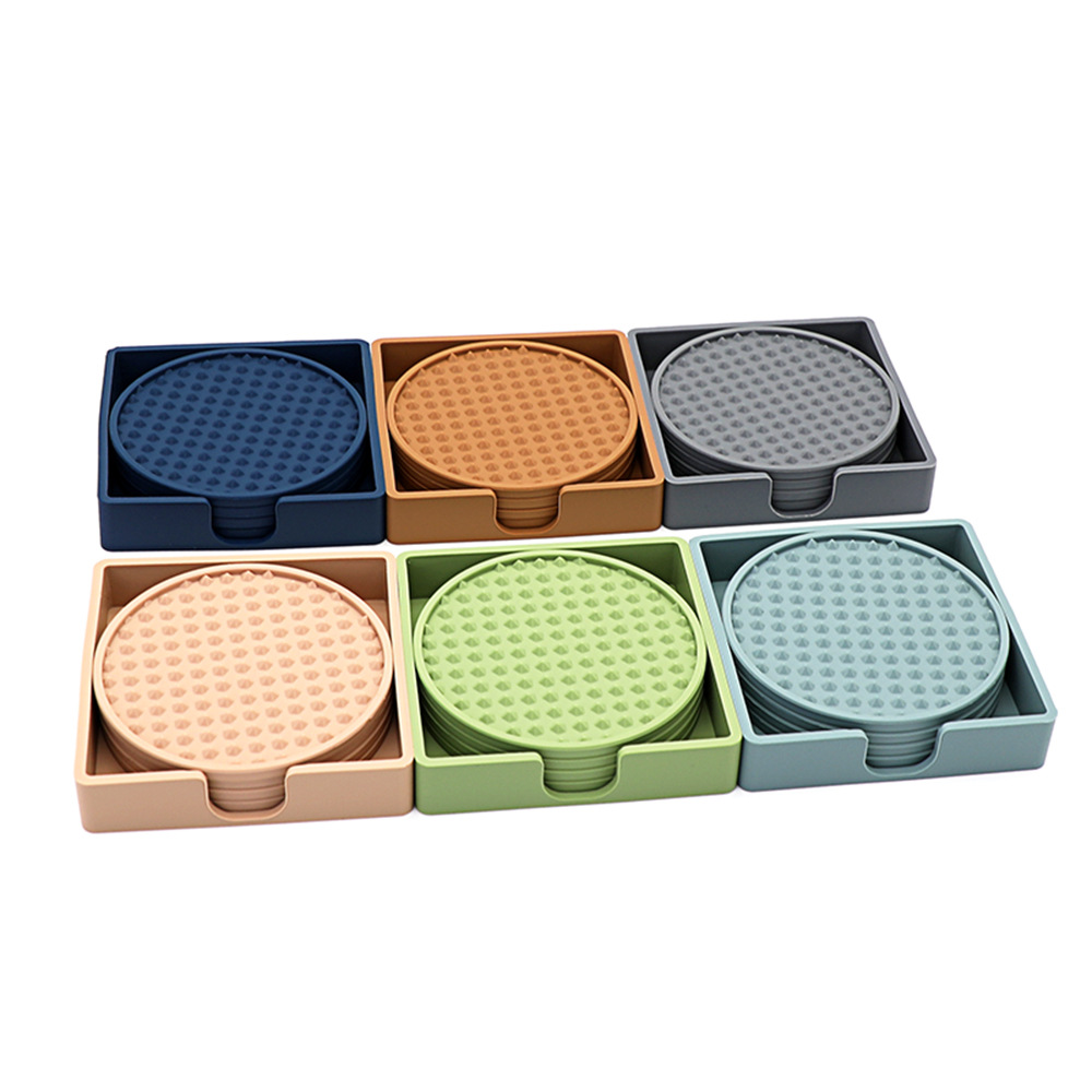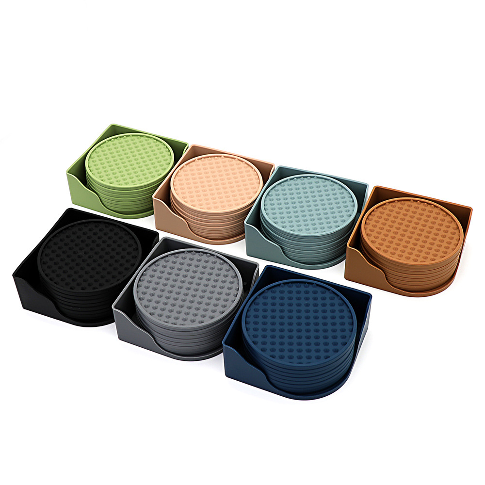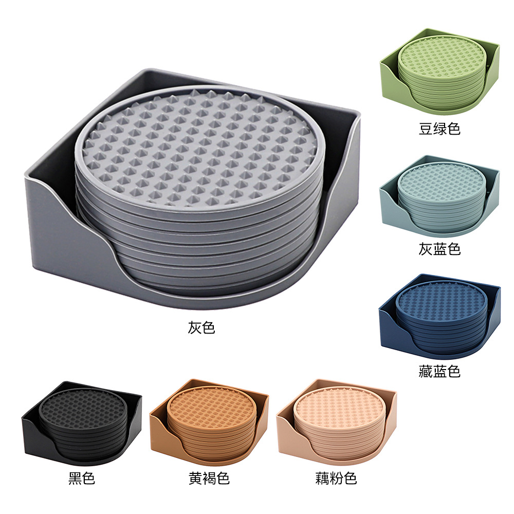 Amazon puede imprimir logo almohadilla de aislamiento térmico juego de silicona posavasos 10cm posavasos de té anti-escaldado alfombra redonda antideslizante para el hogar