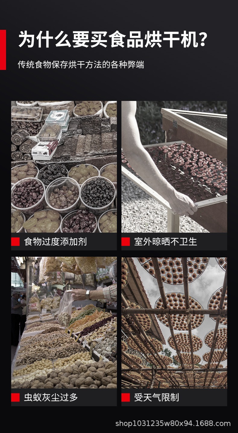 Secador de alimentos Aperitivos para mascotas en el hogar Agua Frutas y verduras Secador de aire de alimentos Pescado seco Máquina comercial de frutos secos