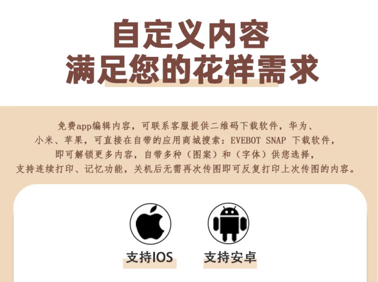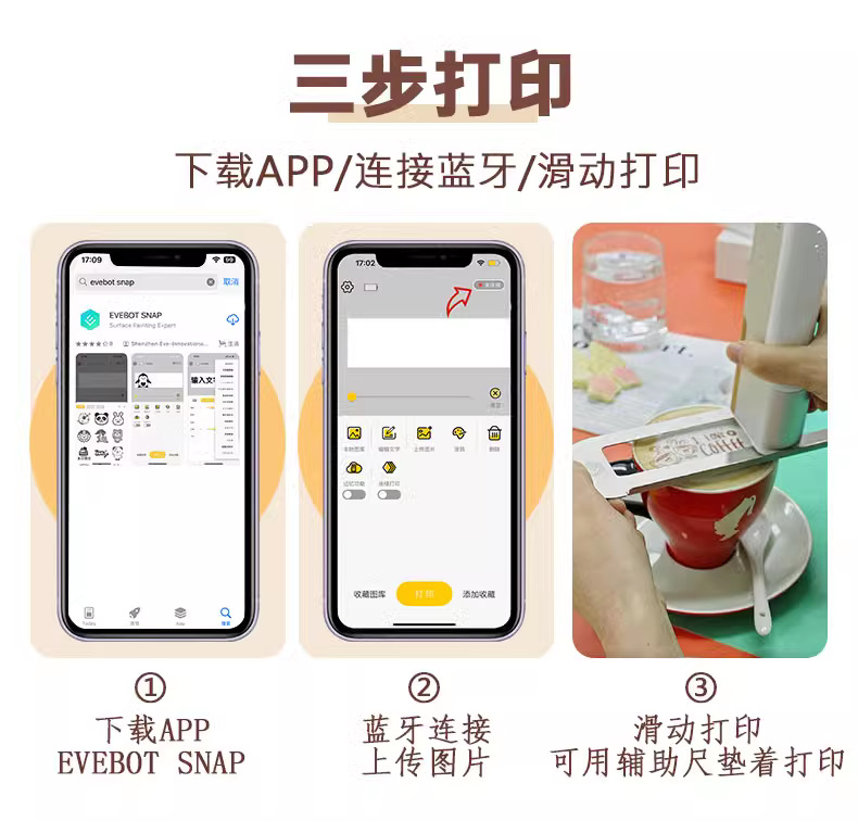 EVEBOT Impresora de alimentos portátil de mil millones de vatios Café Gourmet Yogur Plato de cena Bendición Pan Galletas Patrón de bricolaje
