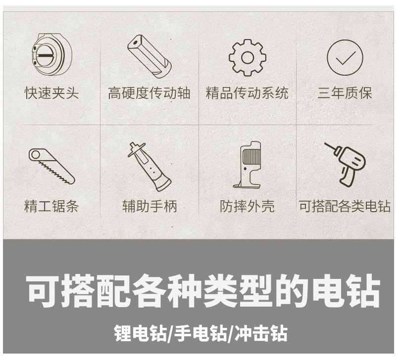 Pequeños taladros de mano para el hogar cambiados a motosierra sierra de sable cambiada a sierra recíproca sierra de calar eléctrica para trabajar la madera cabezal de conversión multifuncional