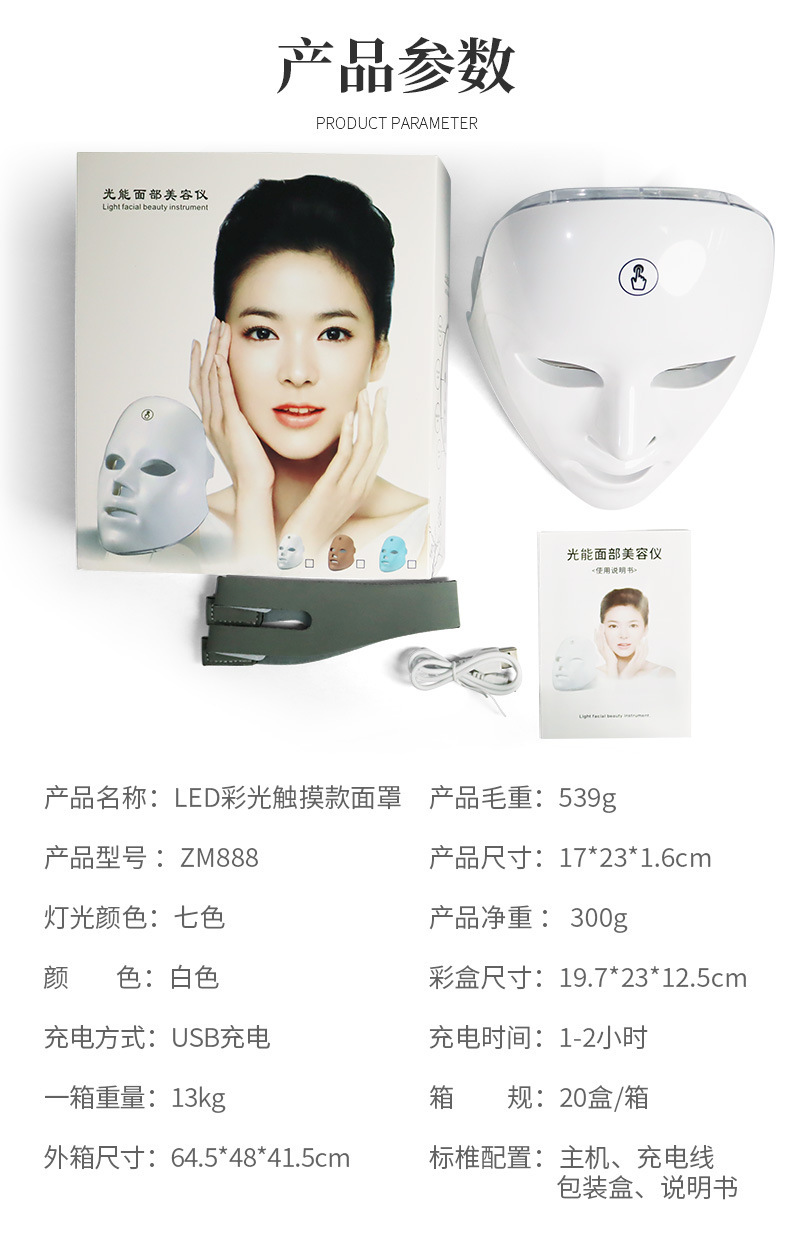Espectrómetro, máscara facial con luz de color de siete colores, máscara facial, rejuvenecimiento de la piel, espectroscopía led de fotones, instrumento de belleza