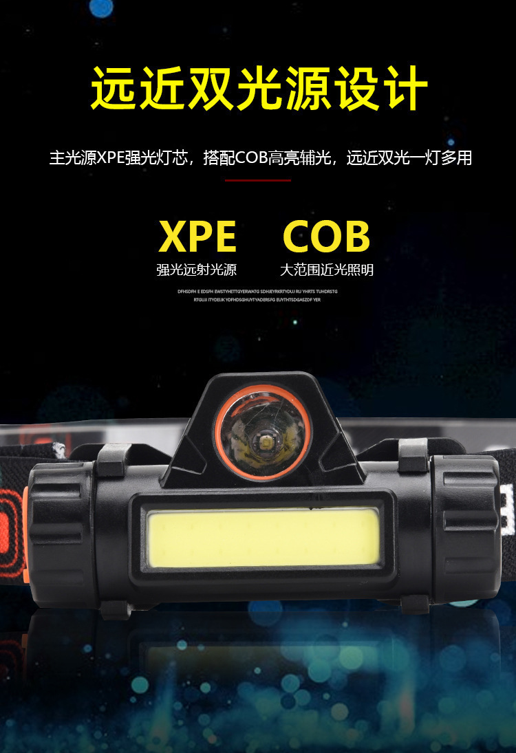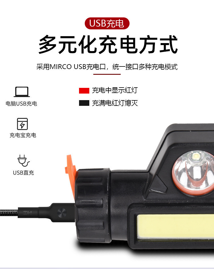 LED al aire libre fuerte luz faro multi-función de iluminación de carga USB montado en la cabeza faro COB montañismo pesca montado en la cabeza
