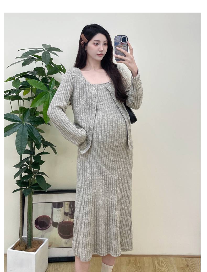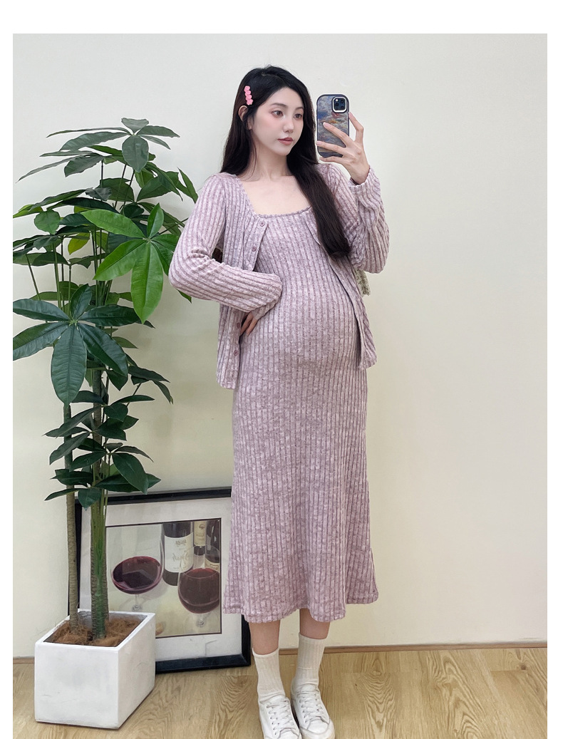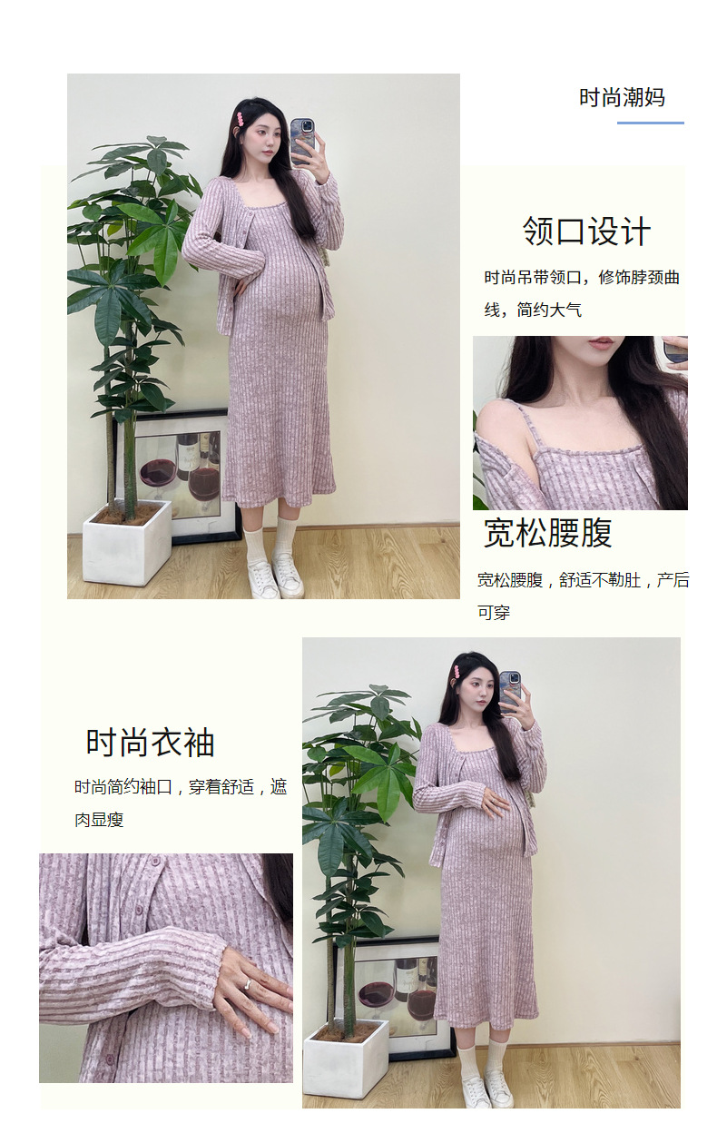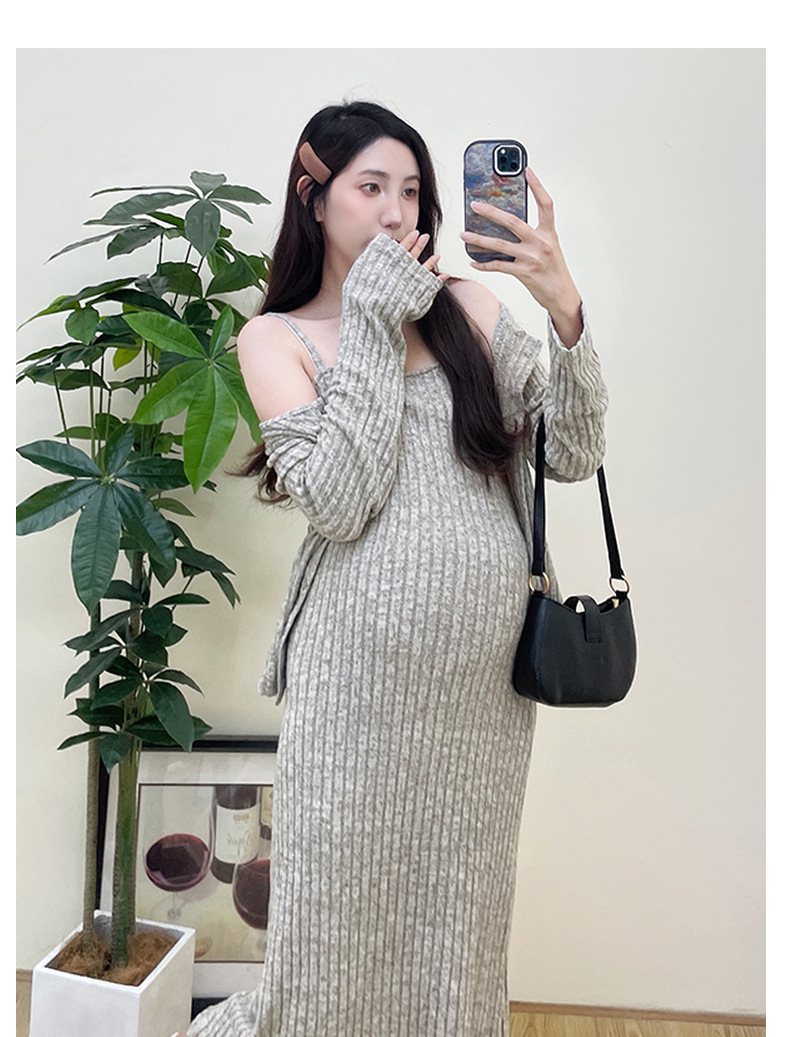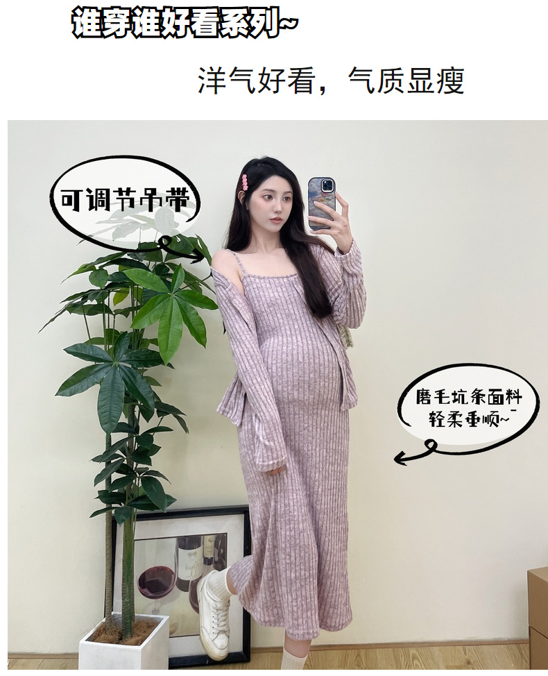 Vestido de maternidad 2024 otoño nuevo temperamento de moda, suave y suave, suelto y delgado, falda de tirantes, cárdigan pequeño