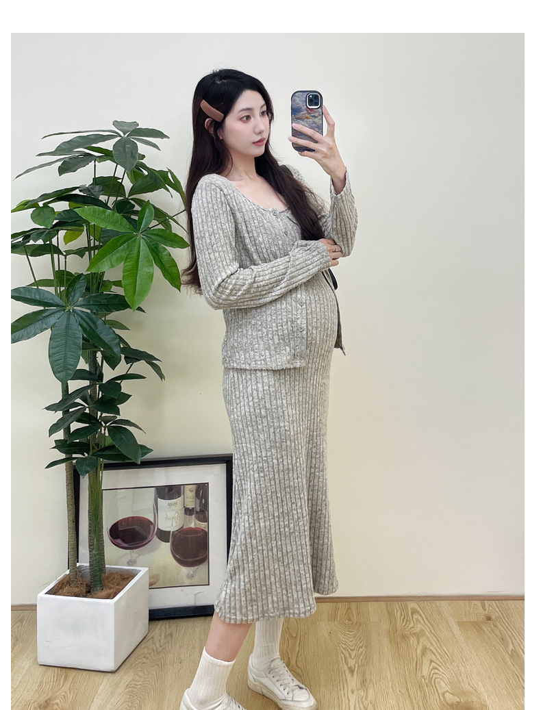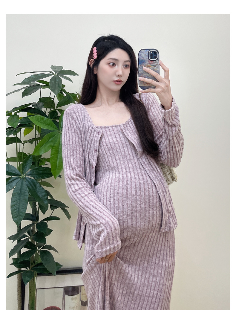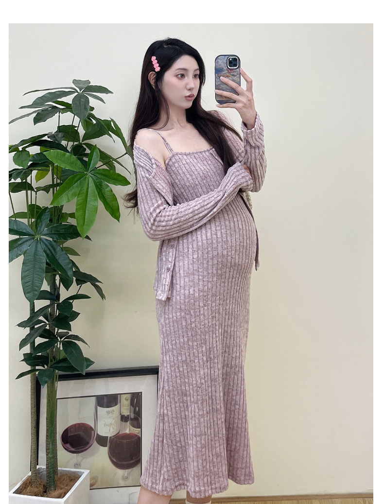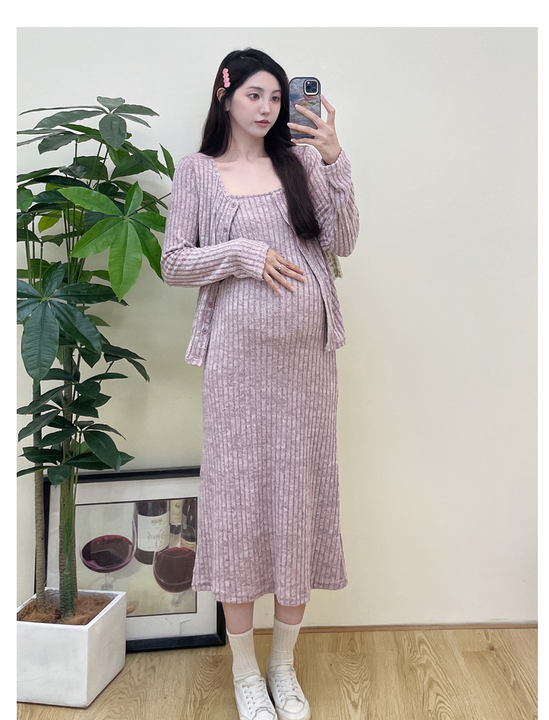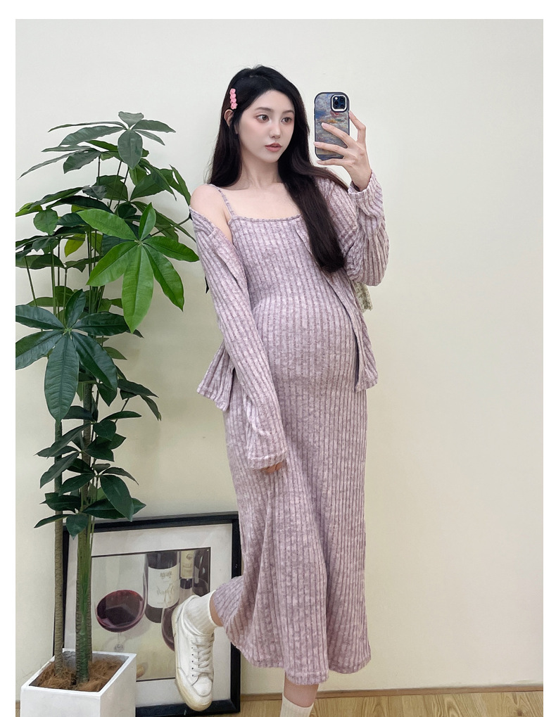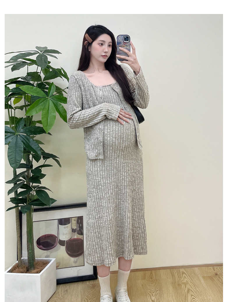 Vestido de maternidad 2024 otoño nuevo temperamento de moda, suave y suave, suelto y delgado, falda de tirantes, cárdigan pequeño
