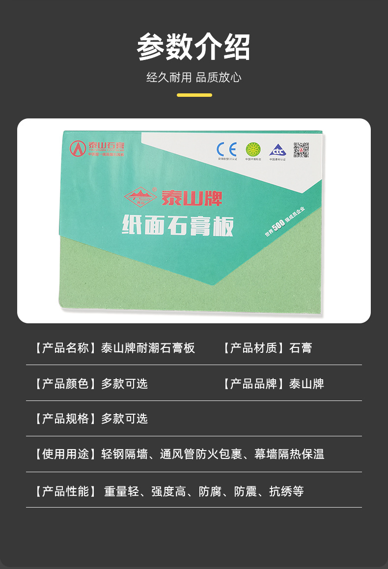 Tablero de yeso Taishan impermeable a prueba de humedad resistente al fuego decoración del hogar tablero de yeso techo partición pared decoración materiales al por mayor