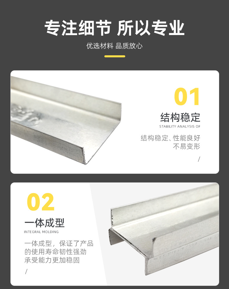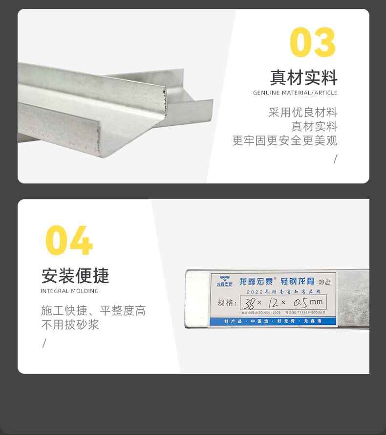 Longxin Hongtai DU38 quilla principal quilla penetrante placa de yeso pared de partición de techo ingeniería especial quilla de acero ligero en forma de U