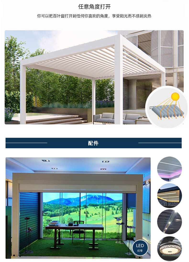 Al por mayor nuevo estilo chino de aleación de aluminio pabellón eléctrico toldo jardín al aire libre nuevo estilo chino Villa sol Sala pabellón