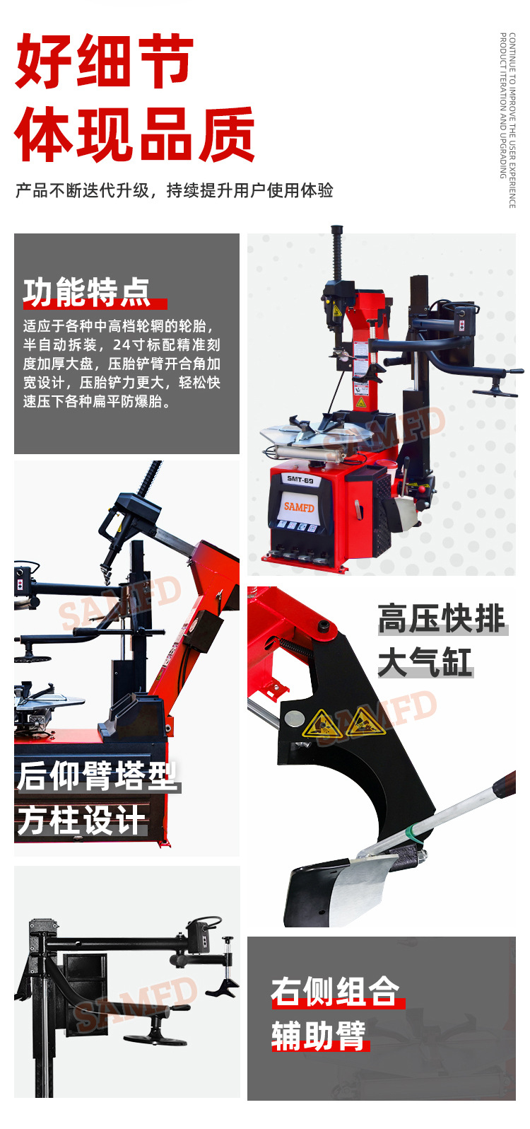 Venta directa de fábrica, extractor automático de neumáticos de automóviles de alta gama, desmontador de neumáticos de espalda, brazo auxiliar de desmontaje, neumático a prueba de explosiones