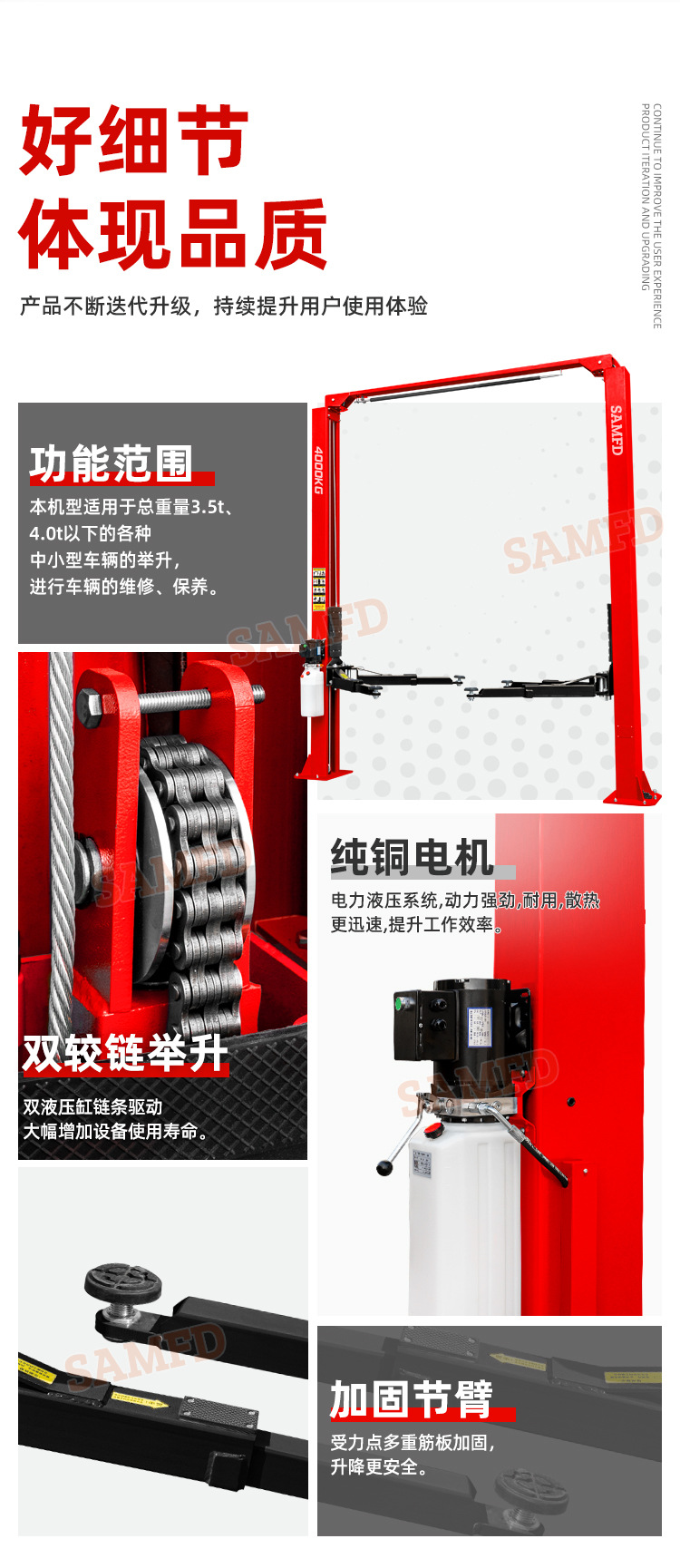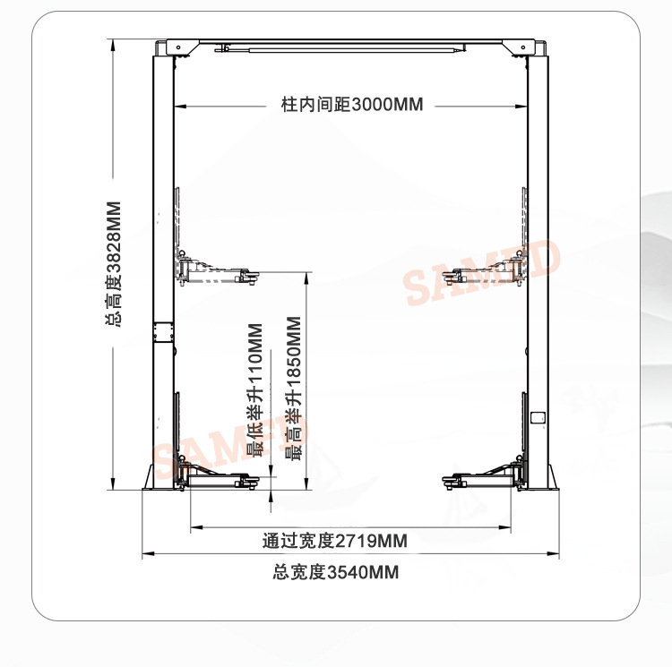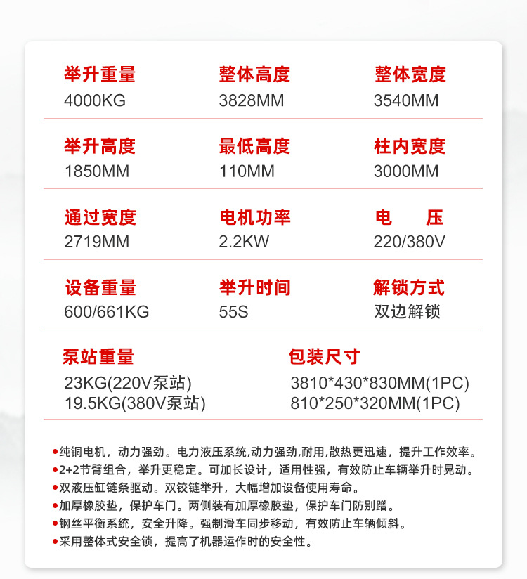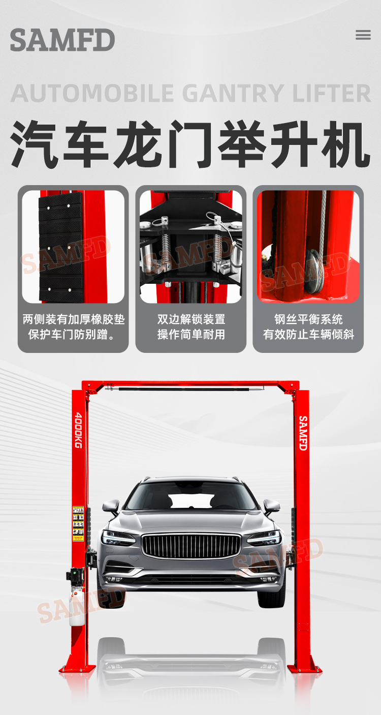 Elevador de elevación hidráulico de doble columna para automóvil Máquina de mantenimiento de elevación de marco de pórtico de doble columna 4T Ventas directas de fábrica