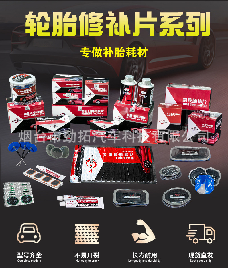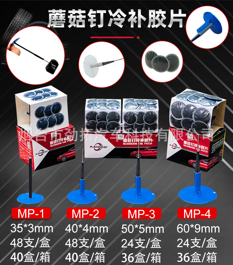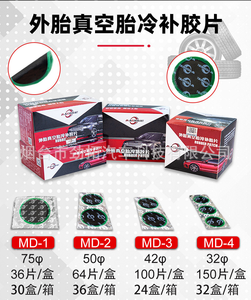 | Modelo de la especificación | MD-1(75mm 36 unids/caja) neumático exterior vacío parche frío,MD-2(50mm 64 unids/caja) neumático de vacío exterior parche frío,MD-3(42mm 100 piezas/caja) neumático exterior vacío neumático parche frío,MD-4(32mm 150 unids/caja) neumático de vacío exterior parche frío,M-1(32MM 200 unids/caja) multifuncional hoja de parche frío,M-2(42mm 150 unids/caja) multifuncional hoja de parche frío,M-3(50mm 80 piezas/caja) Hoja de parche frío multifuncional,MM-5H(70mm 15 unids/caja) reforzado parche frío americano,BP-2(95*95mm 20 unids/caja) parche neumático de goma oblicua,BP-3(115*115mm 10 unids/caja) parche neumático oblicuo,BP-5(56*56mm 10 unids/caja) oblicua parche neumático de goma,M48(48 unidades/caja) parche frío multifuncional,L24(34 unids/caja) parche frío multifuncional,RP-12(60*110mm 10 unids/caja) parche de neumático radial,RP-20(75*125mm 10 unids/caja) parche de neumático radial,RP-10HD(65*80mm 20 unids/caja) parche Neumático radial,MP-1 (varilla 3mm película 35mm 48 unids/caja) setas uñas parche frío película,MP-2 (varilla 4mm película 40mm 48 unids/caja) película de parche frío de uñas de setas,MP-3 (varilla 5mm película 50mm 24 unids/caja) película de parche frío de uñas de setas,MP-4 (varilla 6mm película 90mm 24 unids/caja),M-901(250 ml/botella) agente de vulcanización a temperatura ambiente,M-902(250 ml/botella) agente de vulcanización del neumático interno y externo,MD-903(12 unids/caja) multifuncional pegamento parche frío |