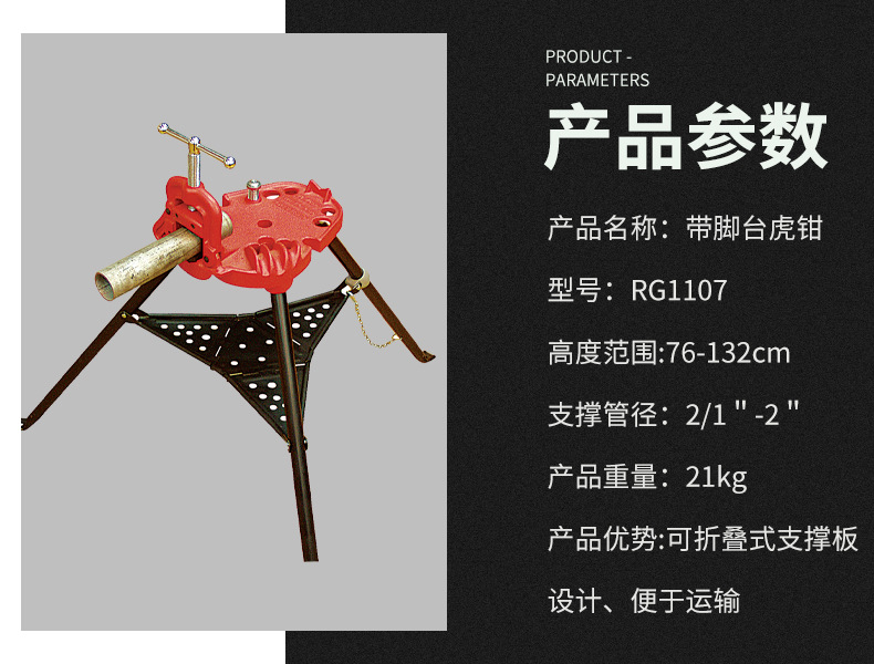 Soporte de tubería de servicio pesado con pinza de tubo de tobillera soporte de tornillo de banco herramienta de tubería soporte ajustable soporte de tubería