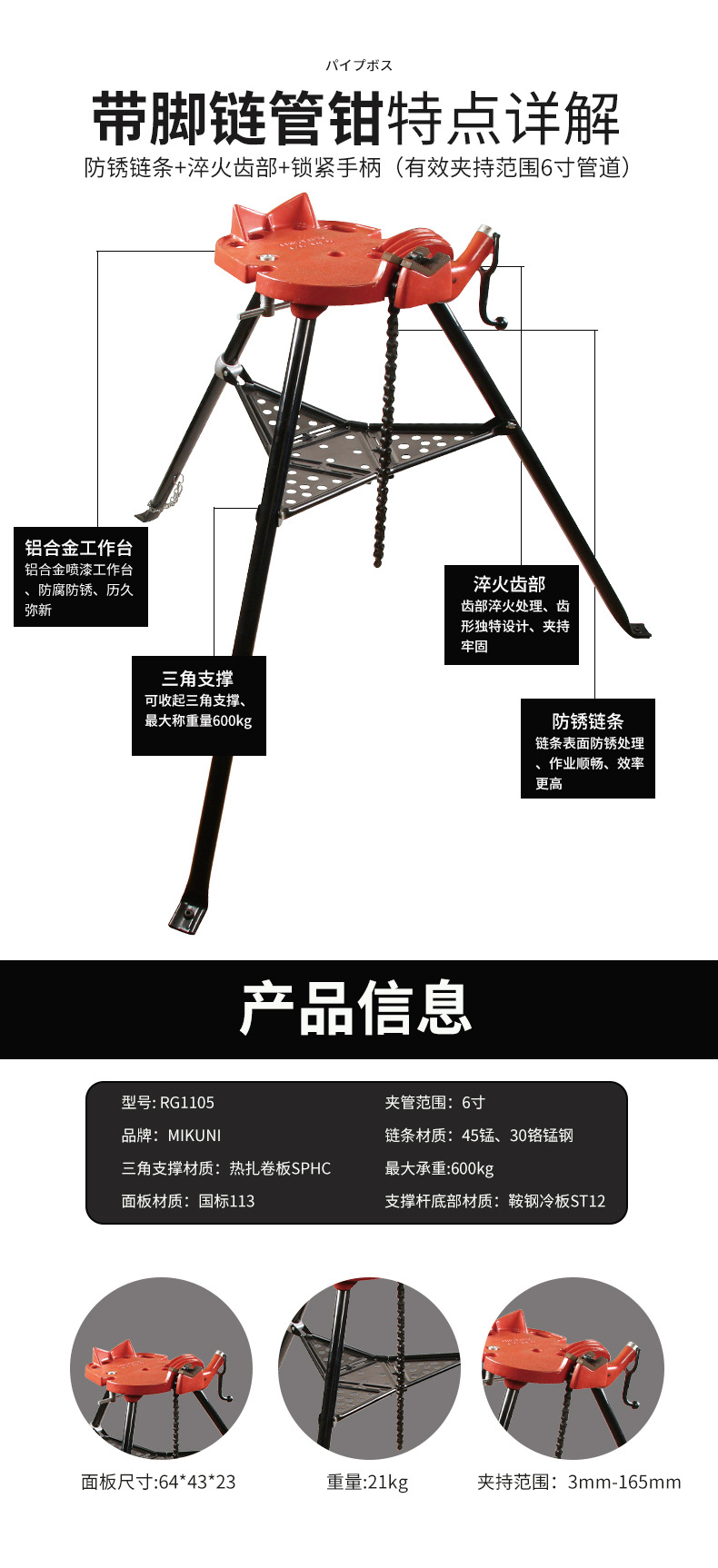 | Modelo de especificación | RG1105 con pinza de tubo de tobillera,RG1107 tornillo de banco con pie |