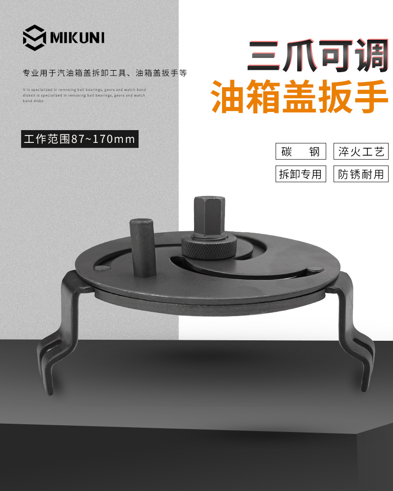 Llave de la tapa del tanque de combustible ajustable de tres mordazas, herramienta de desmontaje del tanque de combustible, llave de la tapa de la bomba de gasolina universal, multifunción