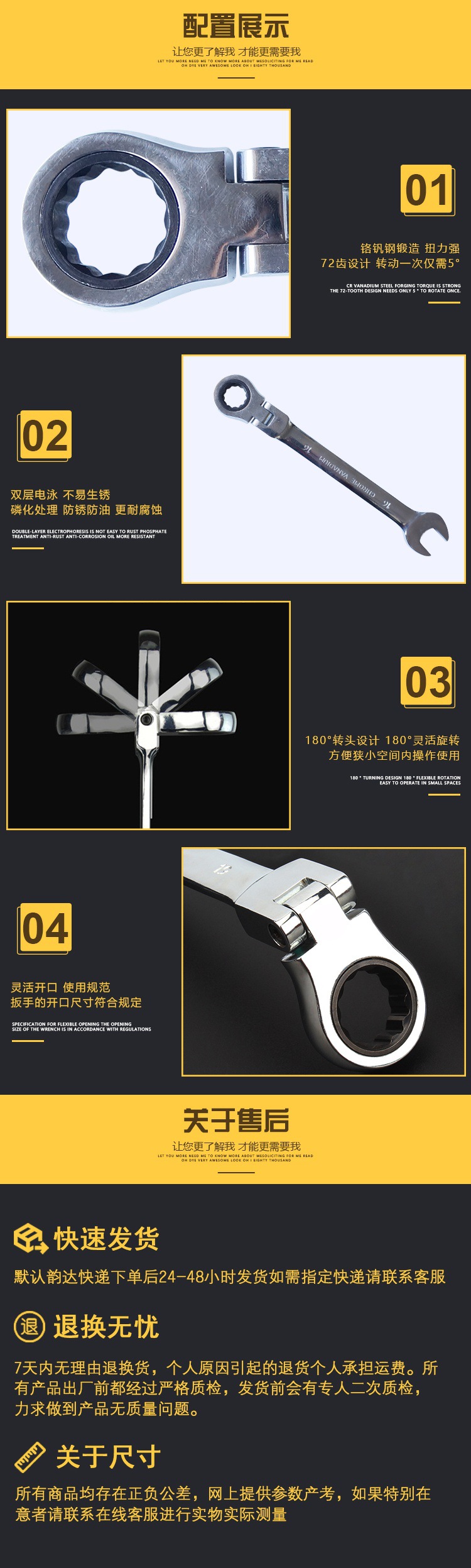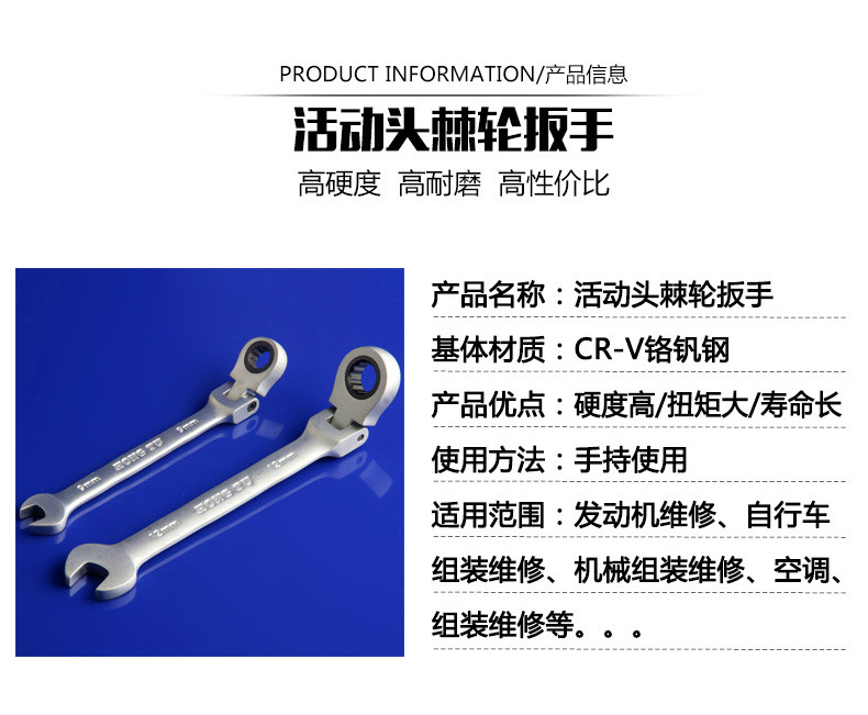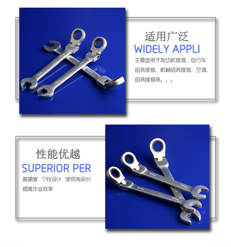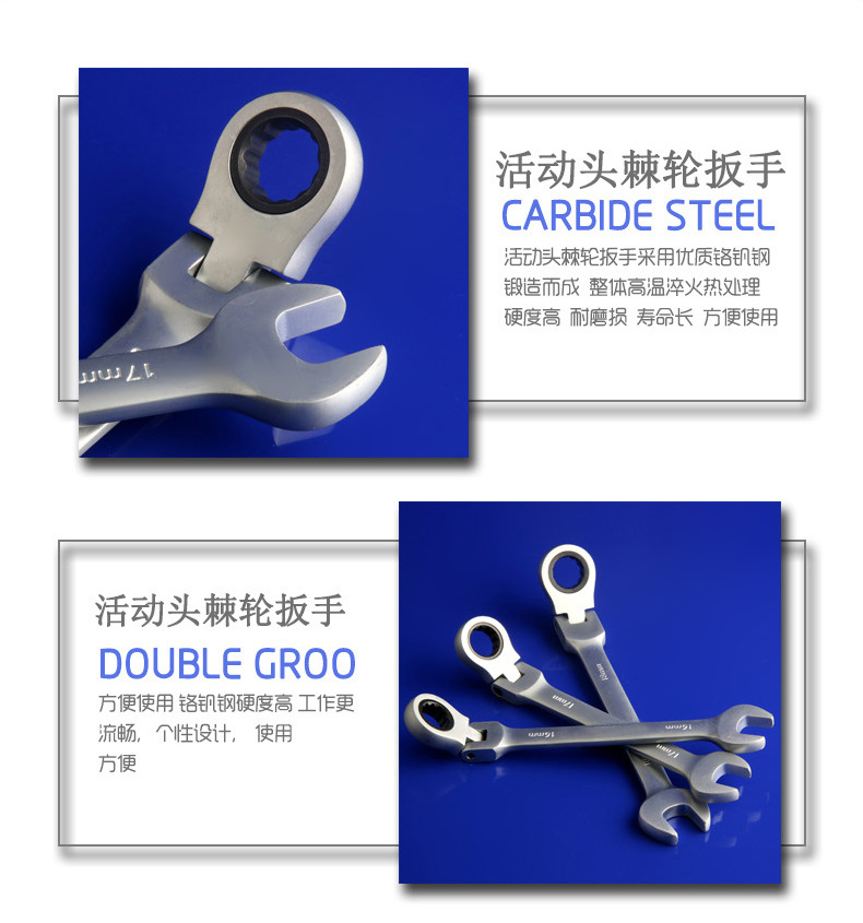 Llave de trinquete de cabeza móvil de acero al cromo vanadio