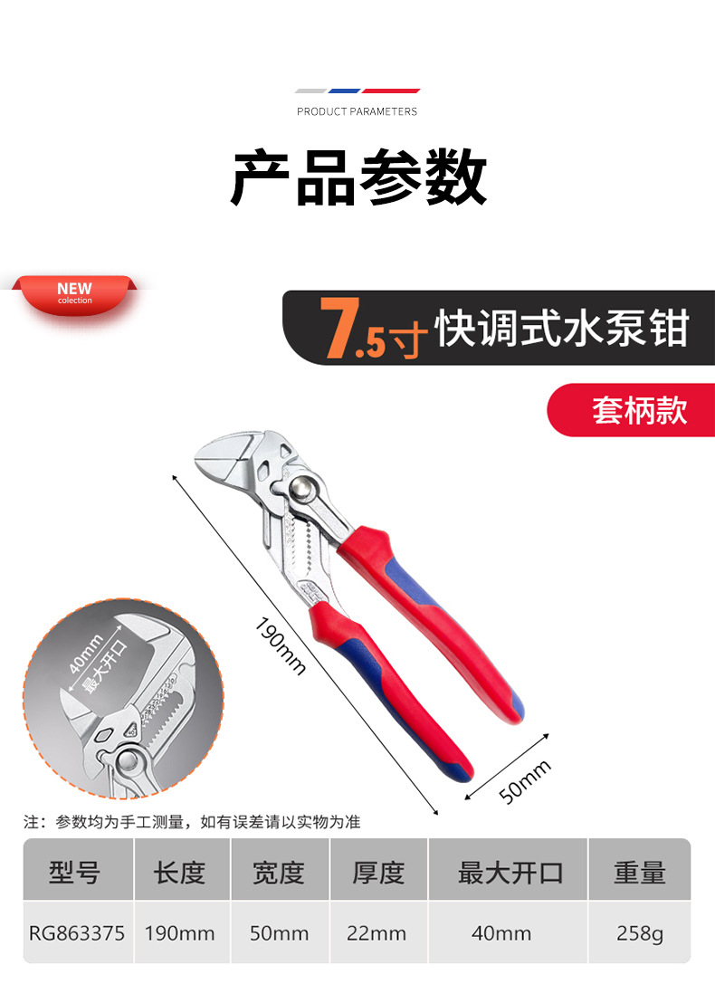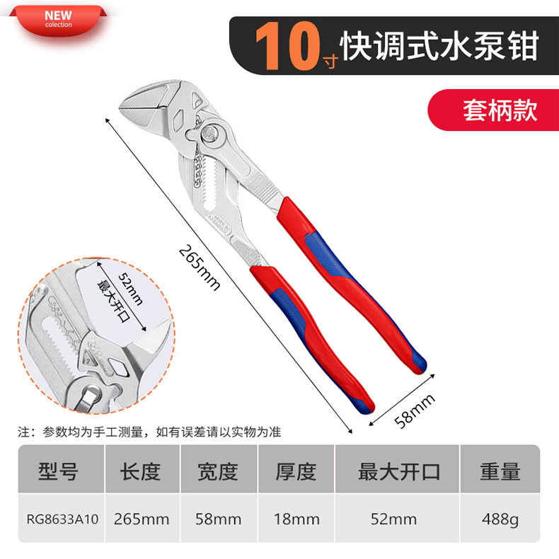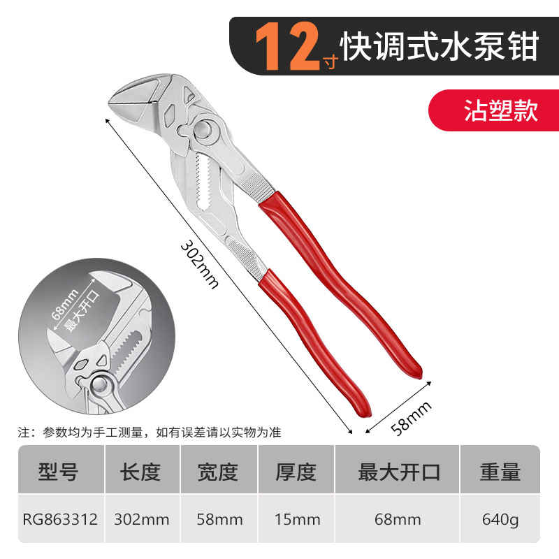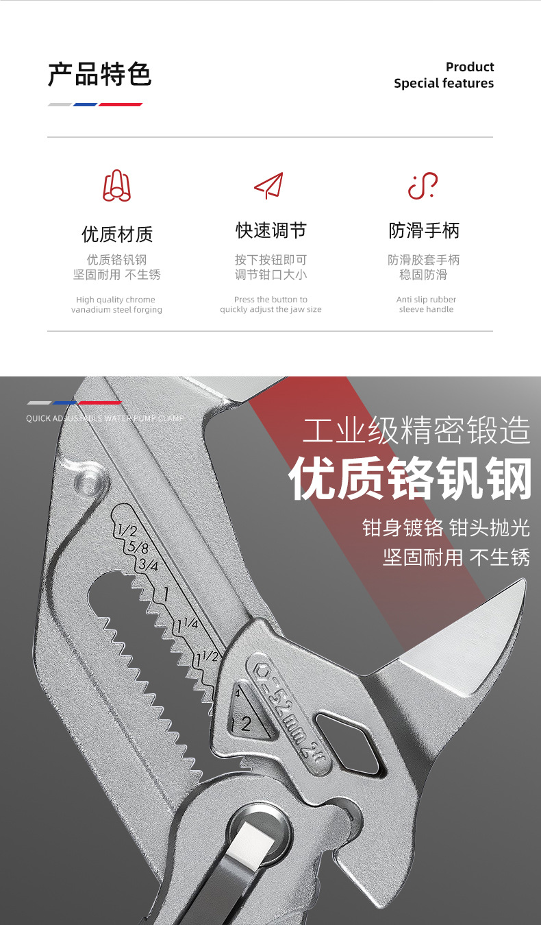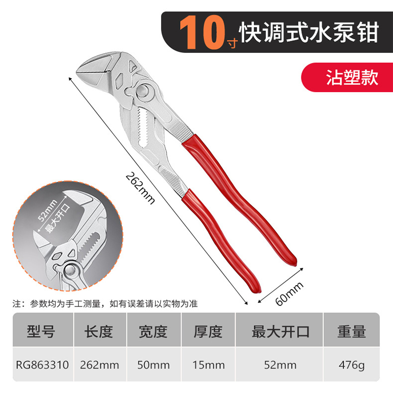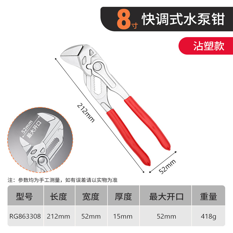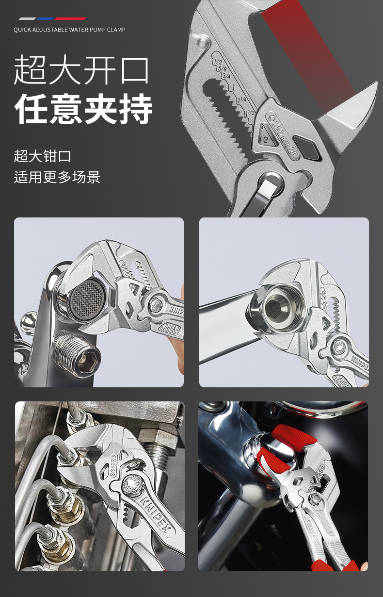 El mismo modelo de Kenipac, alicates de bomba de transferencia rápida, alicates de tubería de agua de pico de águila, alicates de bomba de plomería rápida, llaves de tubería