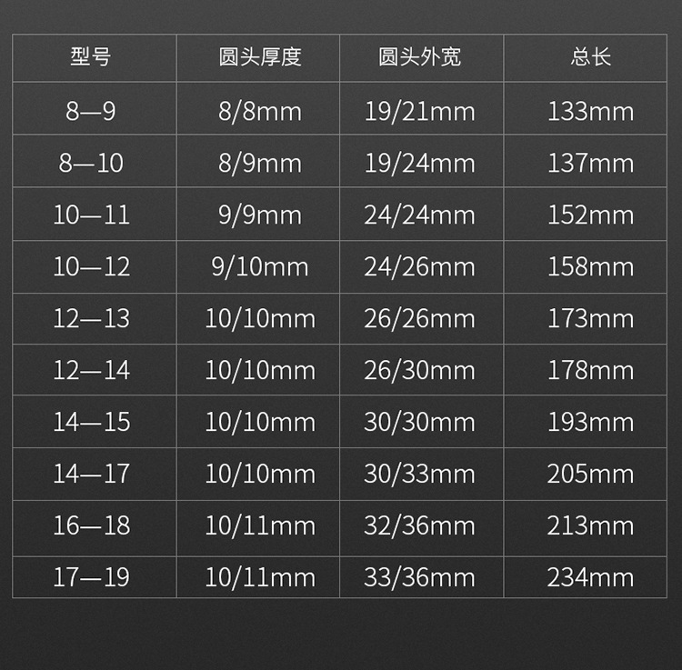 | Modelo | 6-8mm,8-9mm,12-13mm,14-15mm,17-19mm |