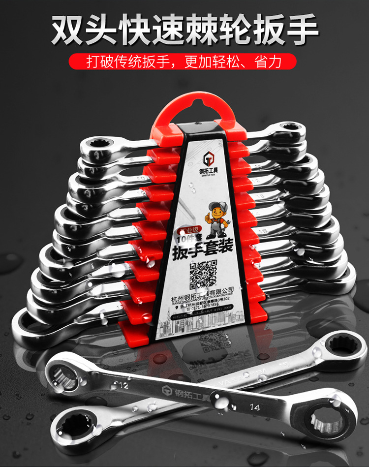 Llave de trinquete de doble cabeza herramienta de llave semiautomática 8-19MM de doble propósito llave de ciruela llave rápida traje