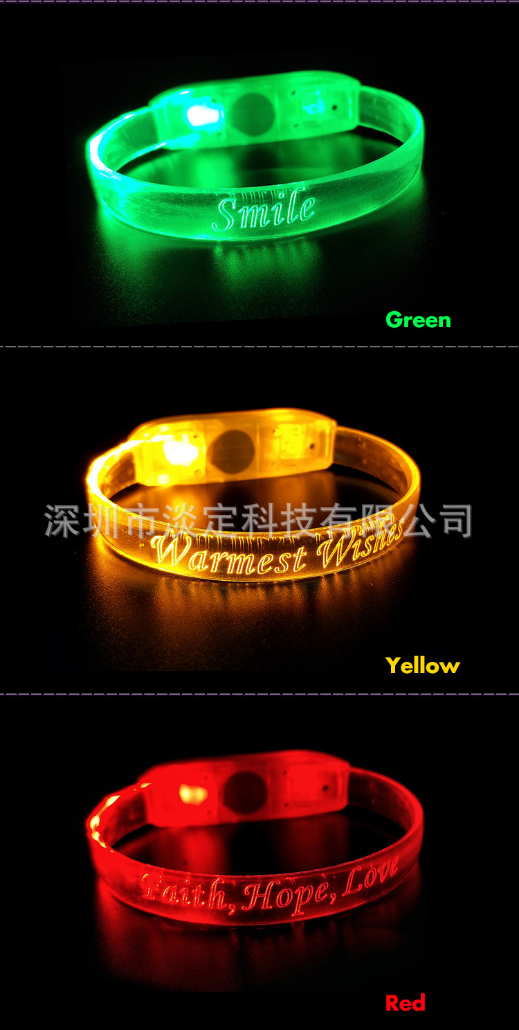 Los fabricantes suministran LED pulsera luminosa transparente TPU flash correa de muñeca atmósfera Accesorios luminosos láser tallado LOGO