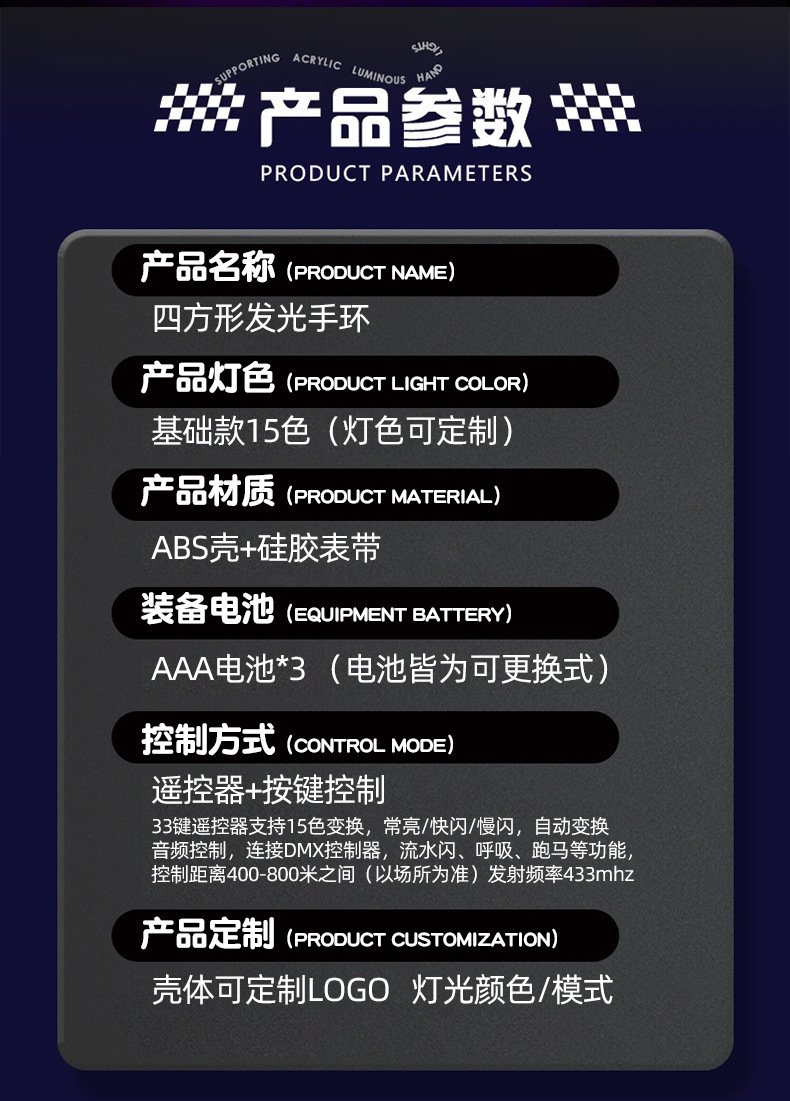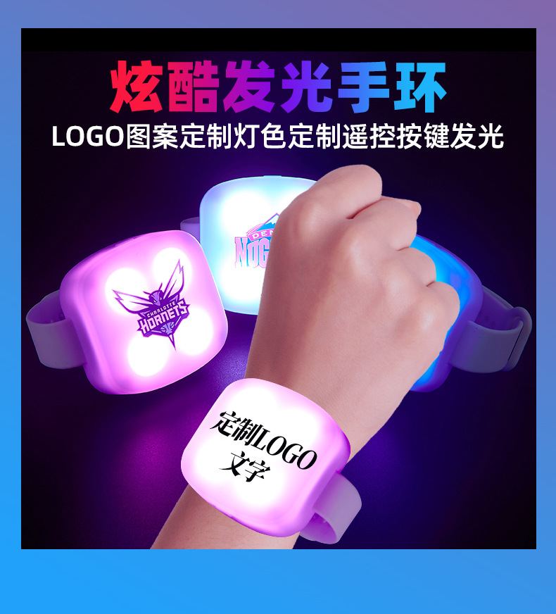 Pulsera luminosa cuadrada de 4 luces, suministros de celebración de la reunión anual de la empresa, pulsera de apoyo de control de campo, pulsera fluorescente ajustable