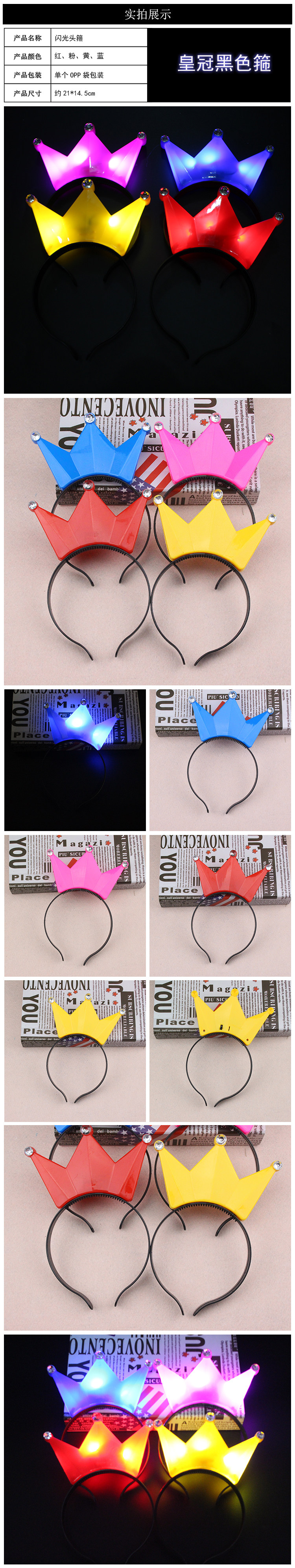 Spot corona diadema luminosa accesorios de vítores de fans estrella corona diadema luminosa 3 luces con diadema de diamantes accesorios para el cabello