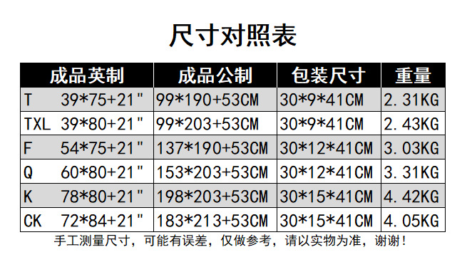 | Tamaño de cama aplicable | Otros tamaños |