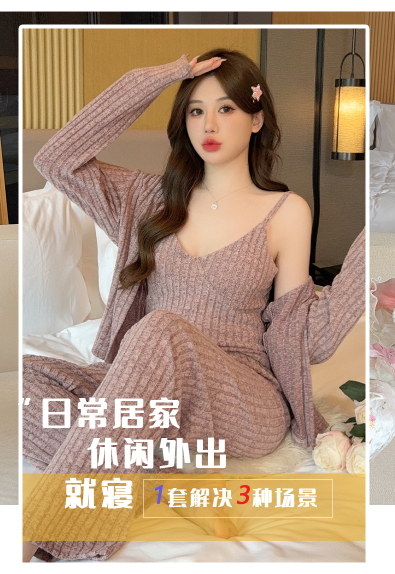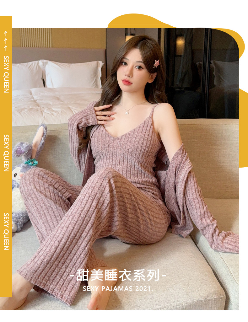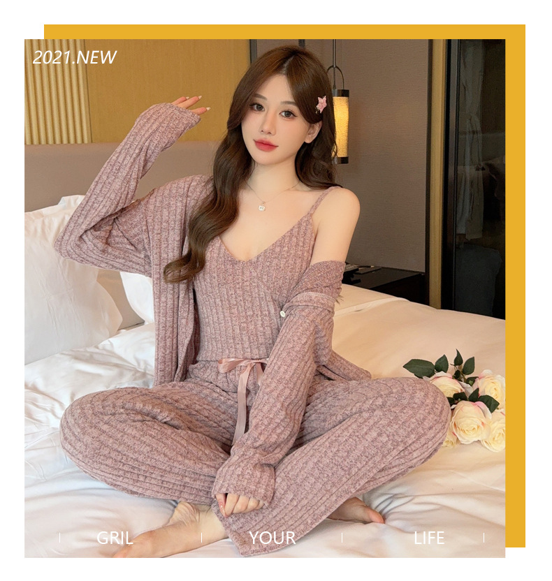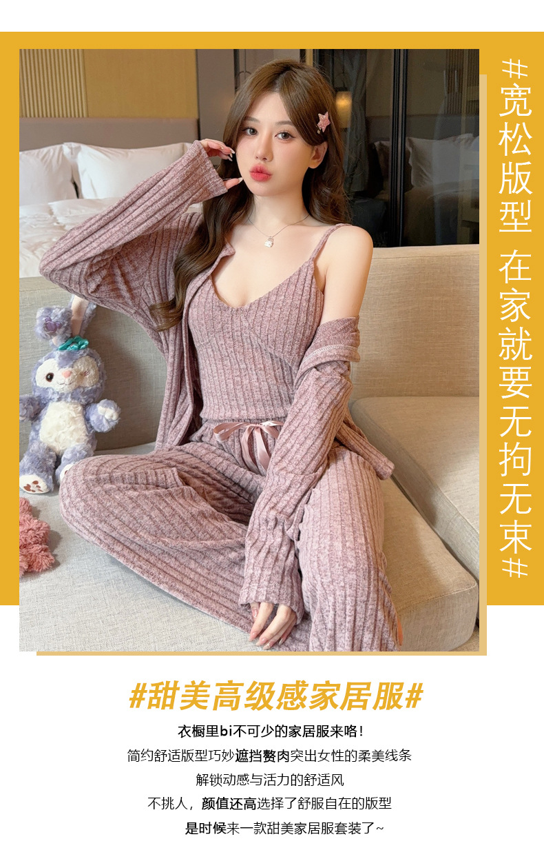 Cachemira de tres piezas pijamas de las mujeres de otoño e invierno de manga larga cepillado felpa 2023 Nuevo más tamaño sexy ropa de abrigo homewear traje