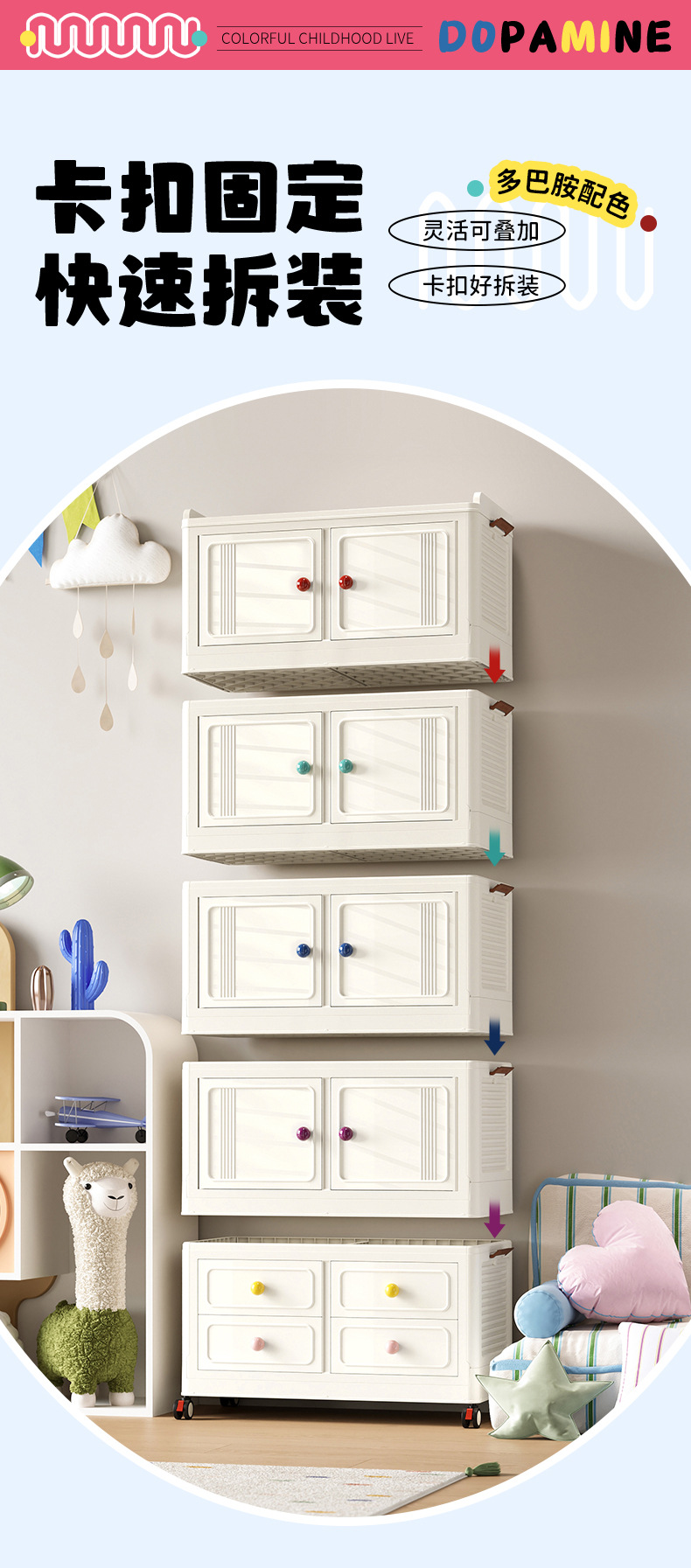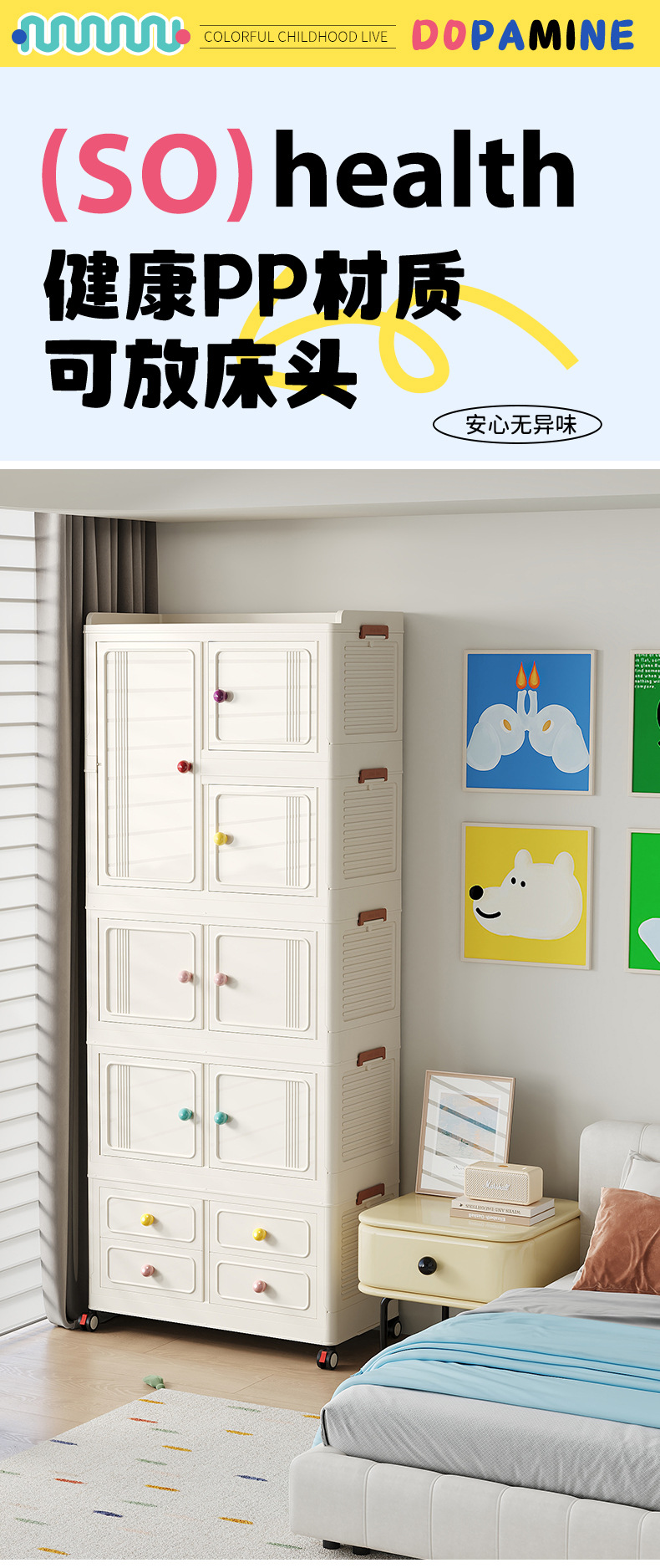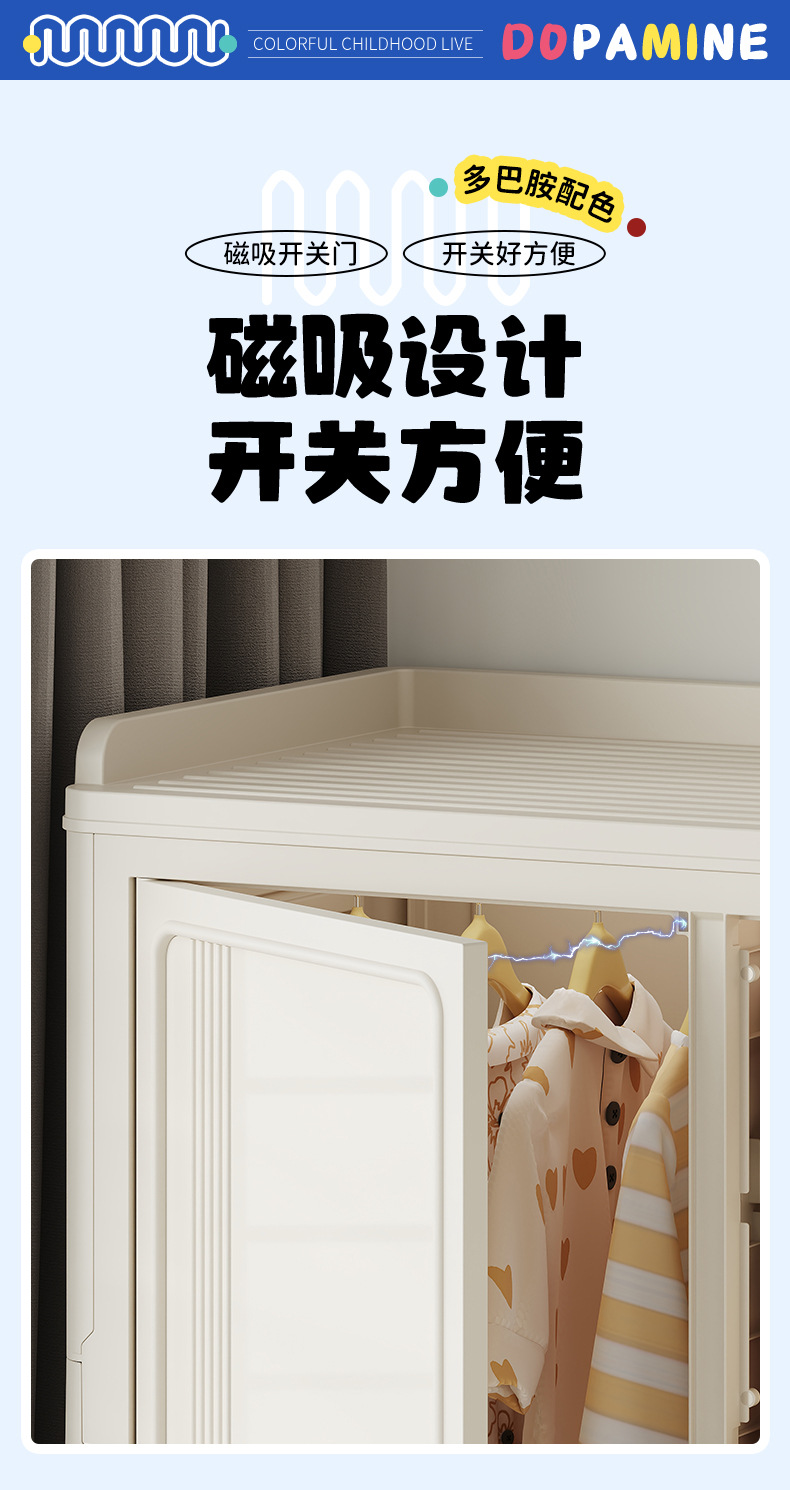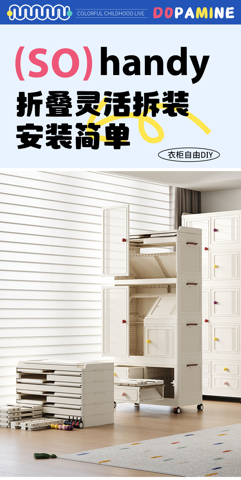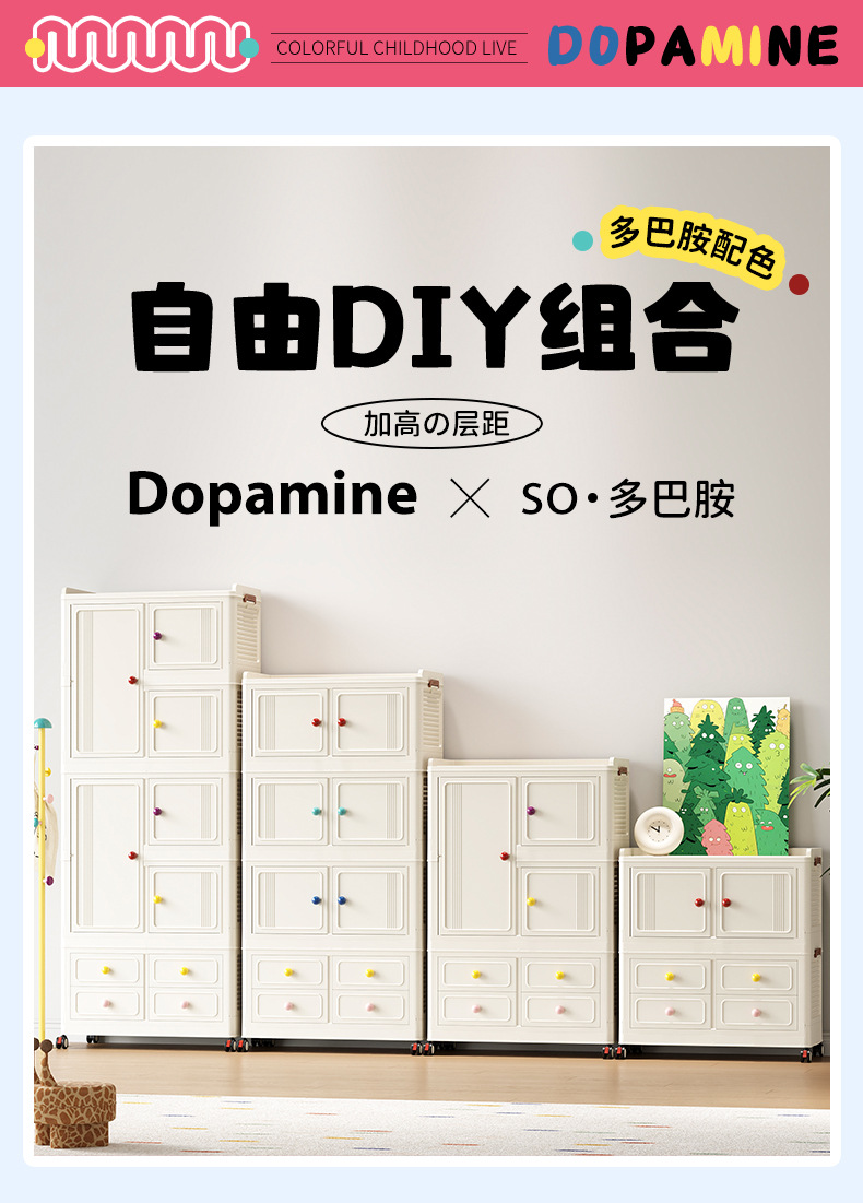 Instalación gratuita de armario para bebés, caja de almacenamiento de ropa para niños, armario para bebés, armario de almacenamiento simple de plástico para el hogar