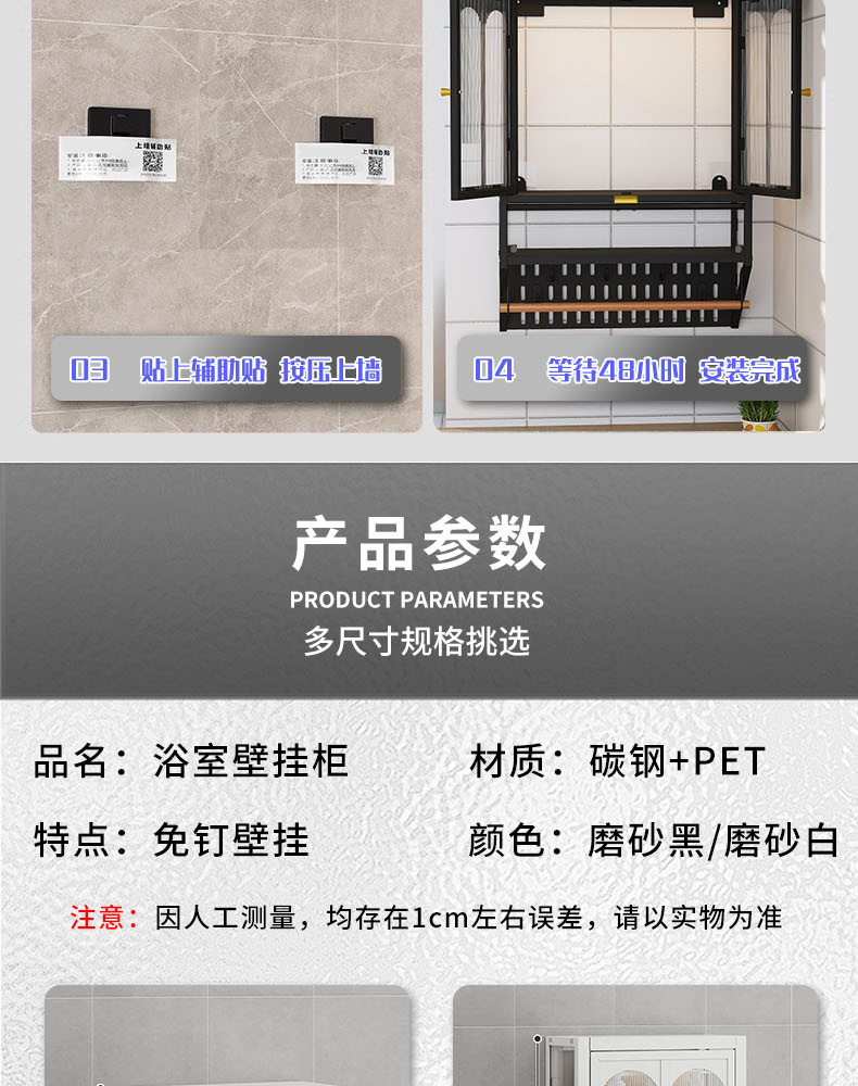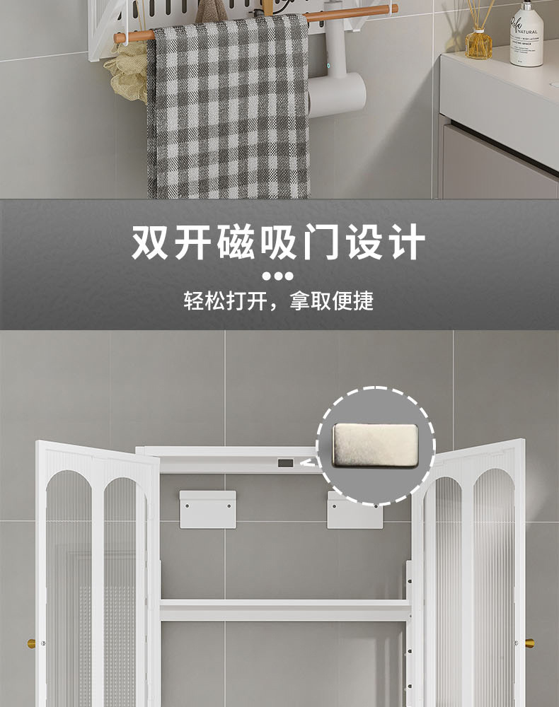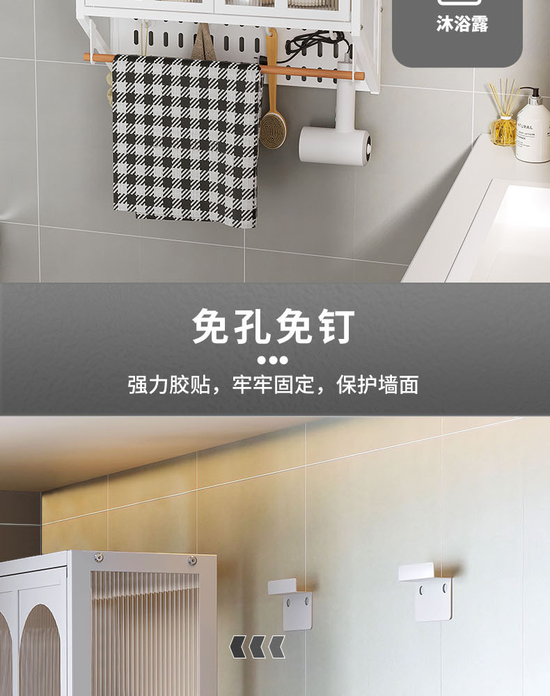 Estantes de pared sin clavos para el hogar, gabinetes a prueba de polvo, baños, gabinetes de pared, estantes, una pieza