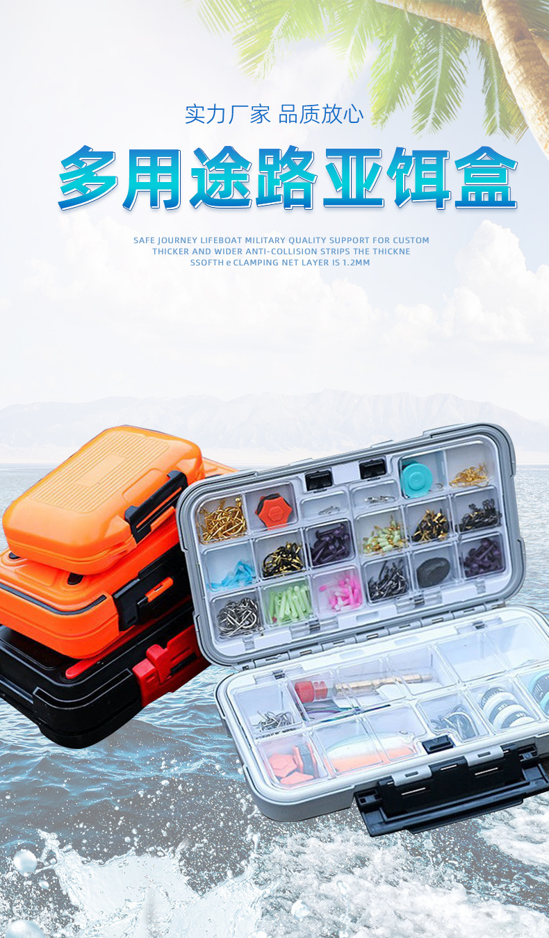 Caja de accesorios de pesca al por mayor Caja de herramientas de almacenamiento Aparejos de pesca Cebo suave Caja de almacenamiento de anzuelos Aparejos de pesca Caja de accesorios Caja de cuero de plomo