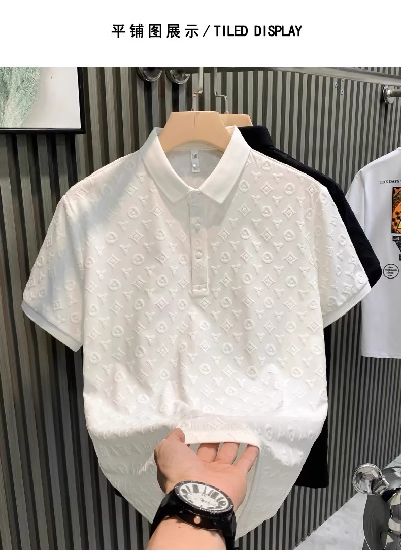 Camiseta POLO de verano Camiseta de manga corta Moda masculina Ligero de lujo Jacquard Casual Juventud Slim-fit Leeve Top
