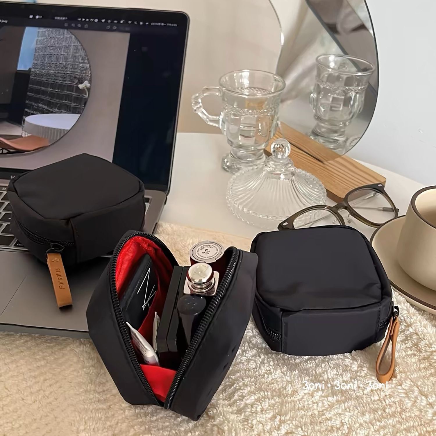 Bolso cosmético sobre rojo de nailon liso, sal, mini portátil simple, lindo tridimensional, bolsa de almacenamiento de color sólido de alto valor