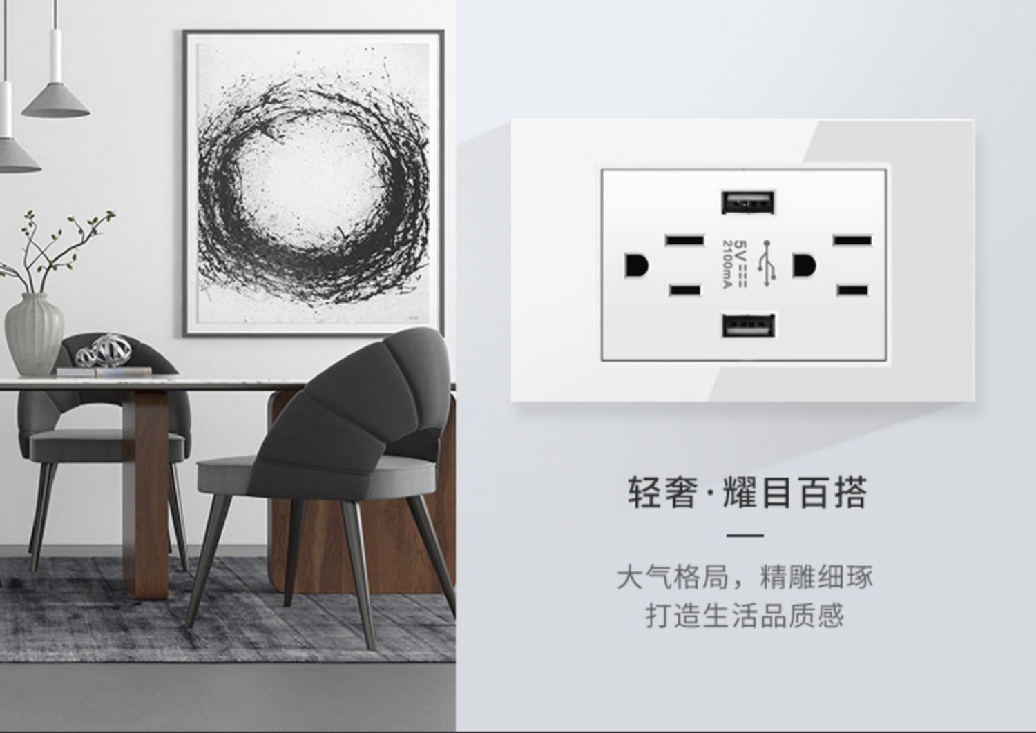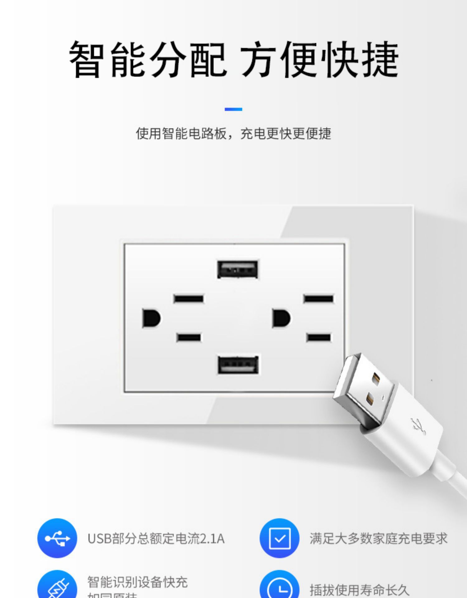 美规插座15A台湾110V美标开关面板带USB墙壁电源家用白色美式面板