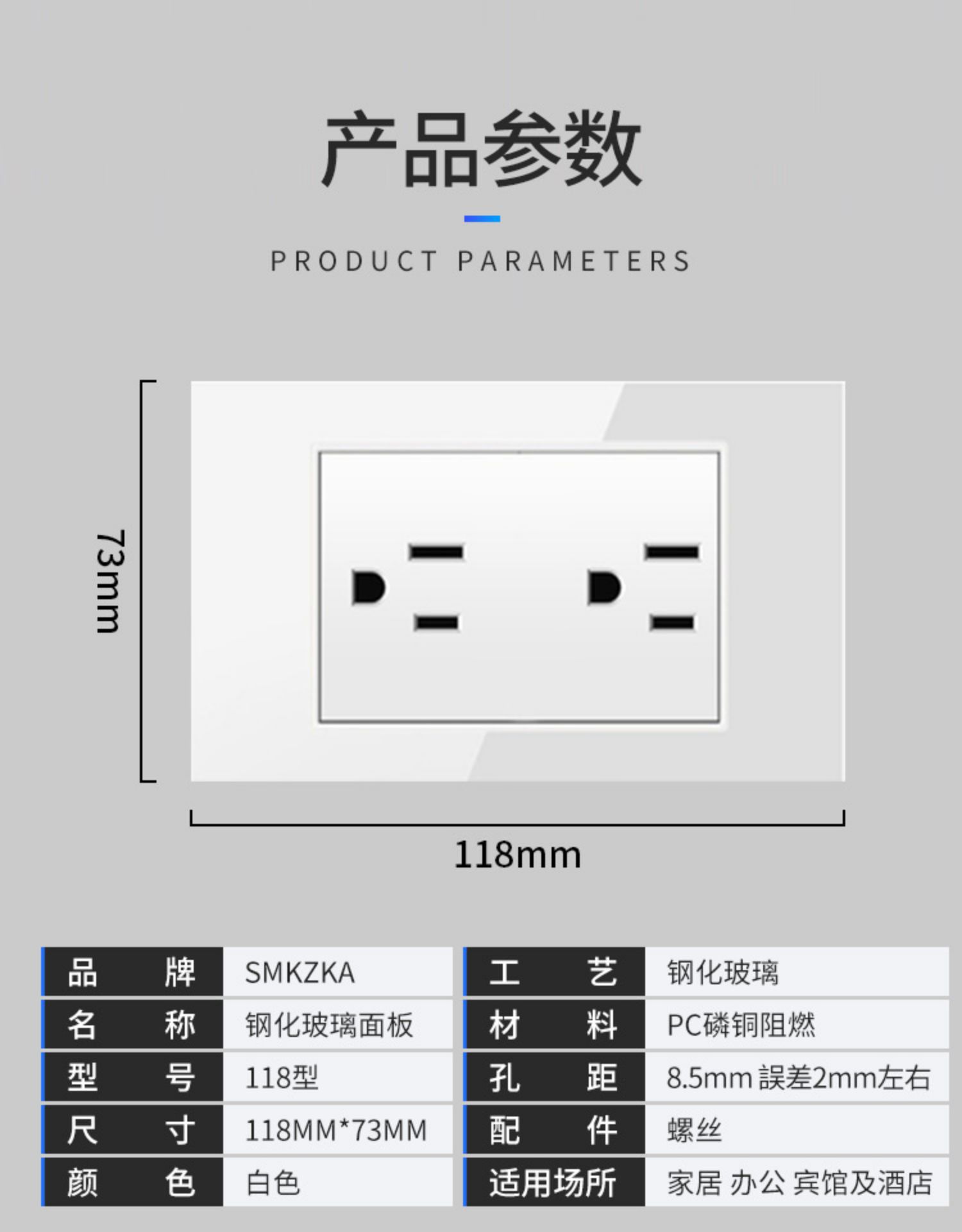 美标插座15A台湾110v电源面板usb墙壁开关美式家用暗装钢化玻璃灰