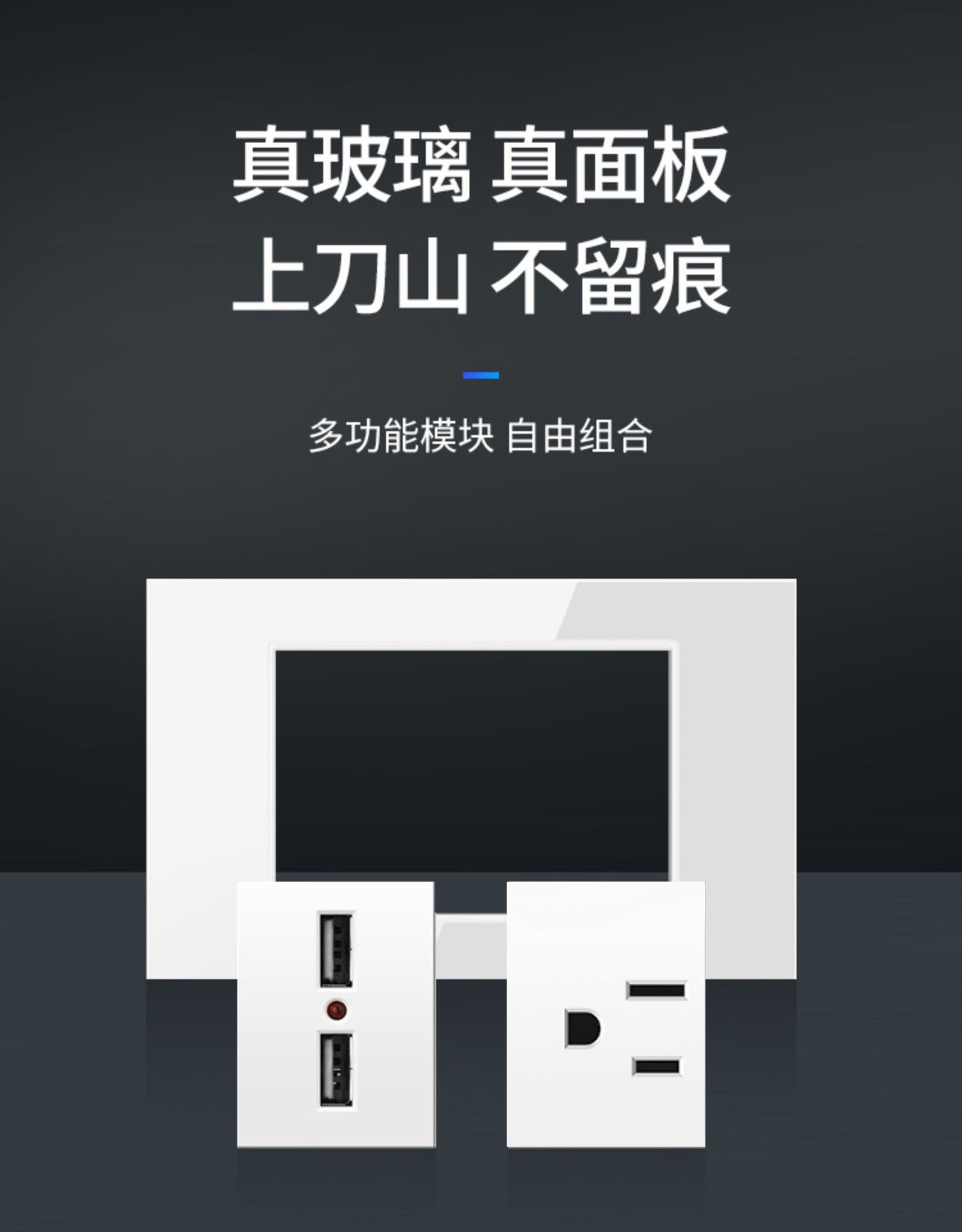 外贸墙壁港澳版13a英式插座带USB插座英标电灯制白色钢化玻璃面板
