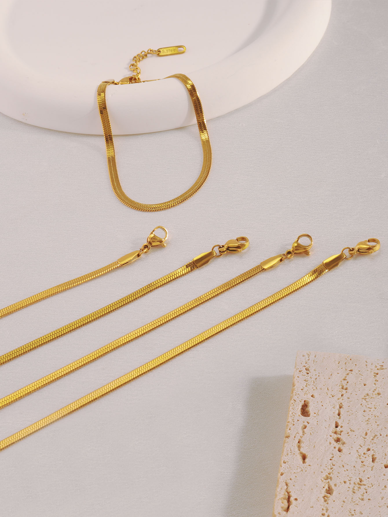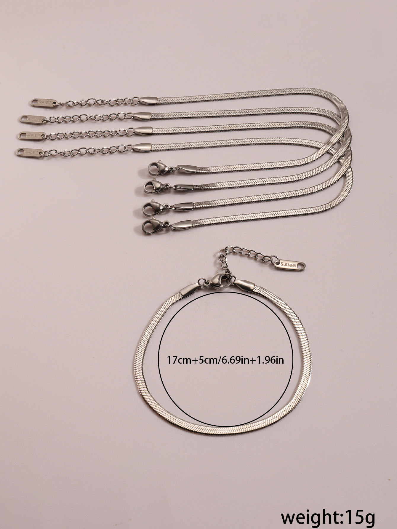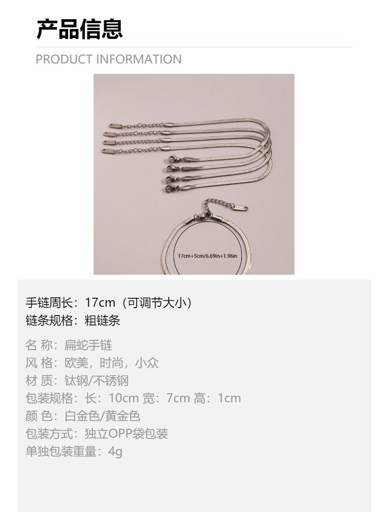 | Colores | [3mm de ancho] Pulsera de serpiente plana plateada,[3mm de ancho] pulsera de serpiente plana dorada |
