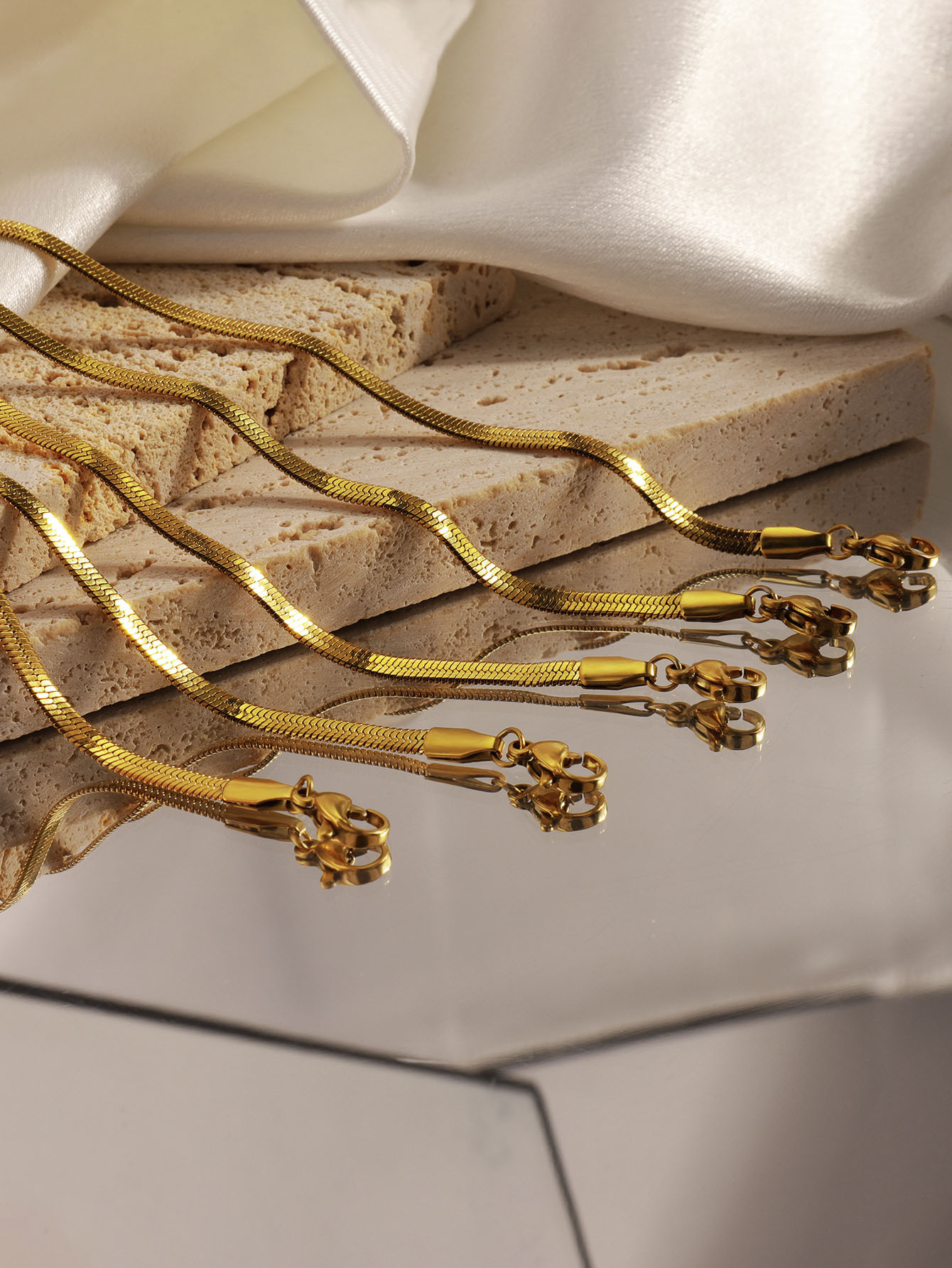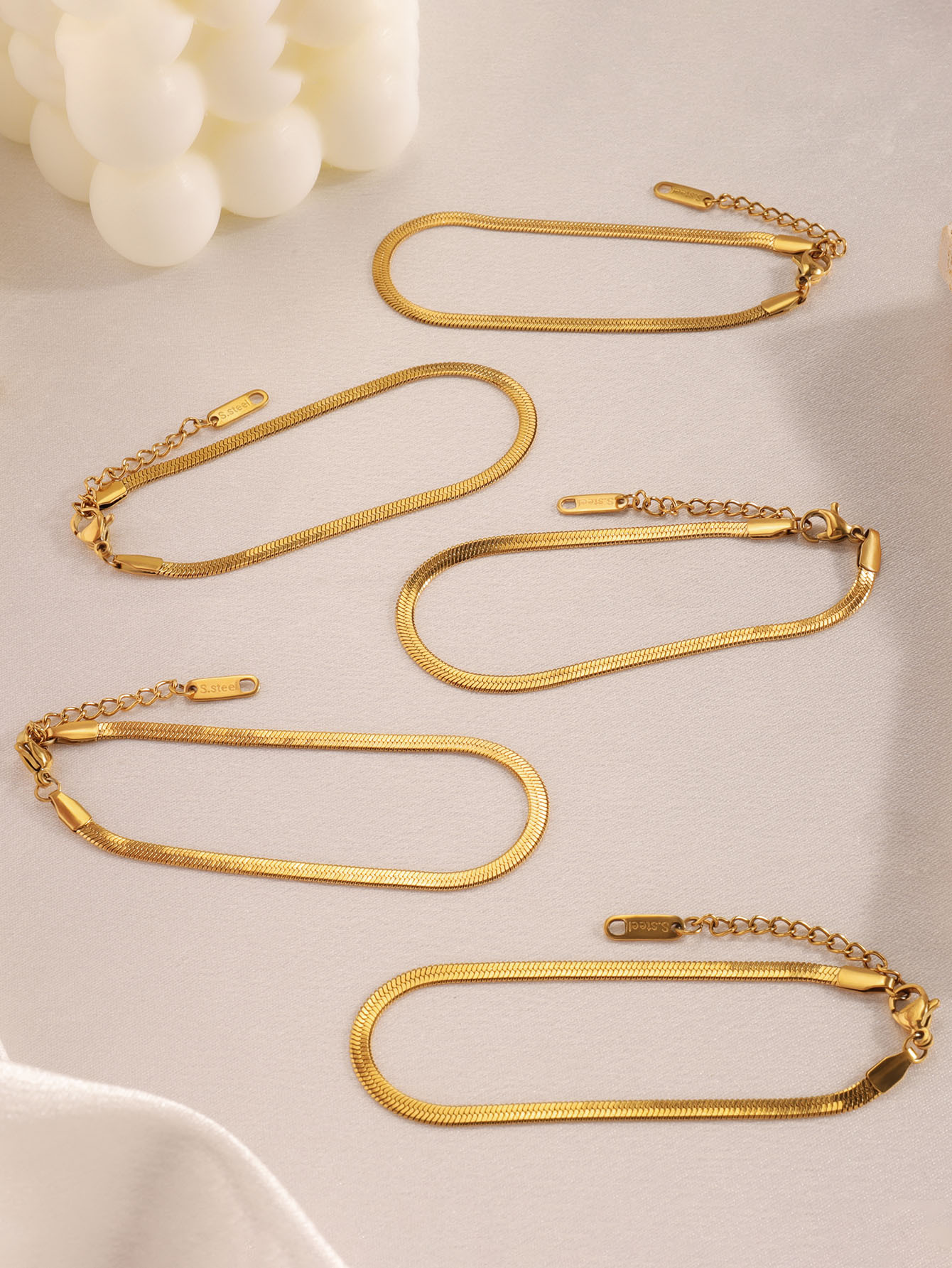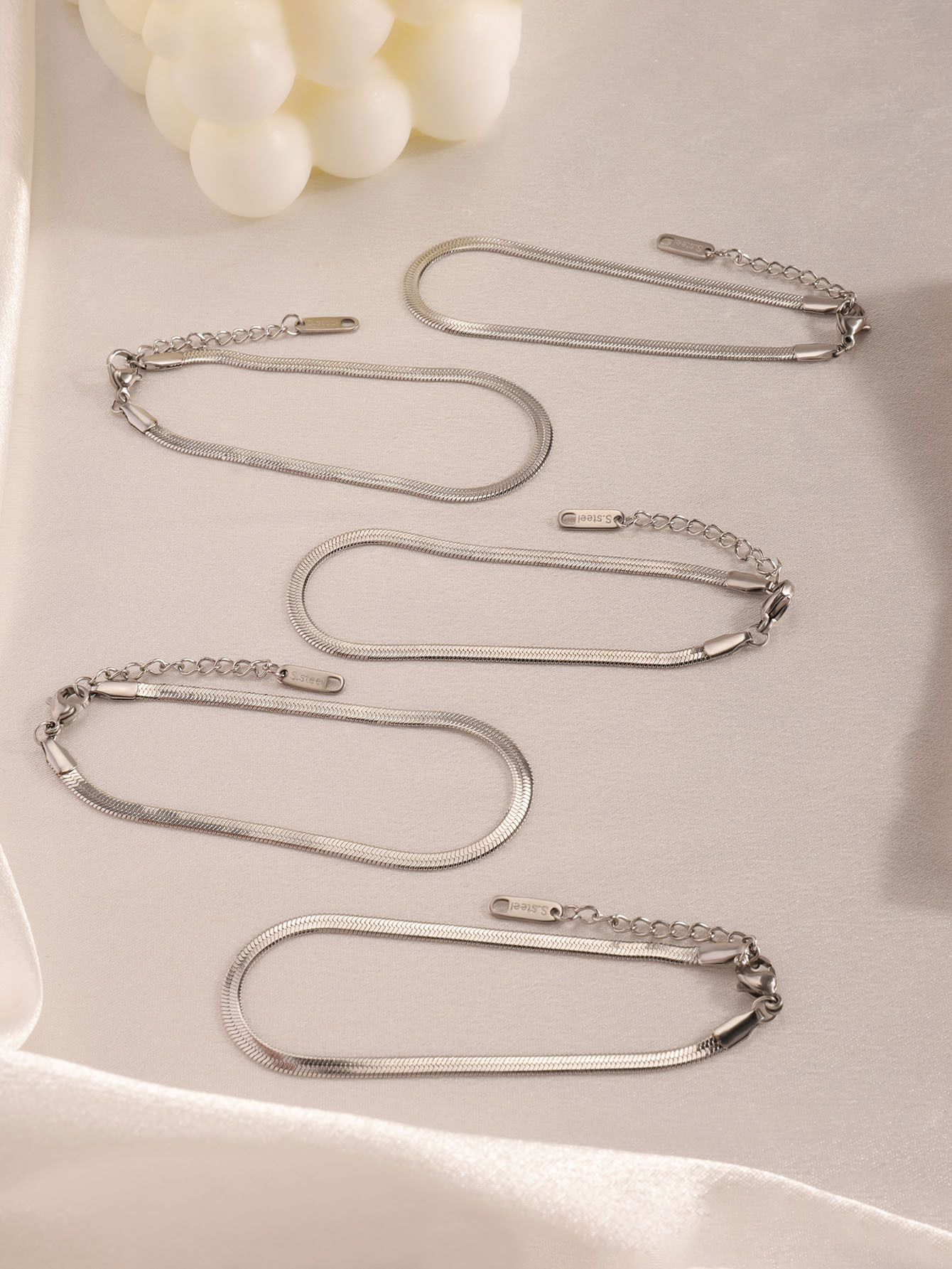 | Colores | [3mm de ancho] Pulsera de serpiente plana plateada,[3mm de ancho] pulsera de serpiente plana dorada |