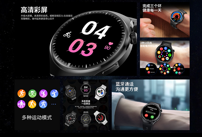 Reloj Inteligente Popular Transfronterizo Watch4ProSuit, Juego 7 en 1, Pantalla Redonda de Alta Definición, Reloj Inteligente Huaqiangbei