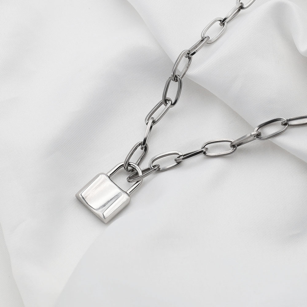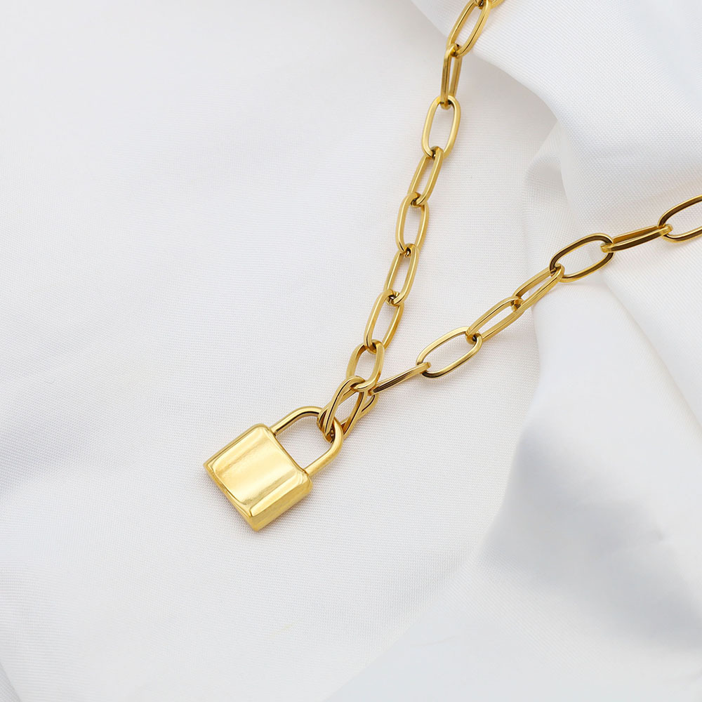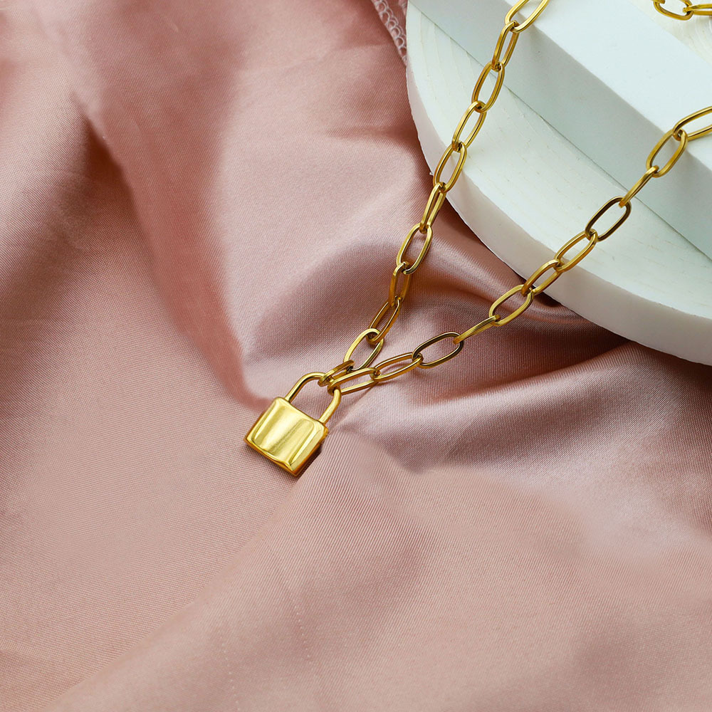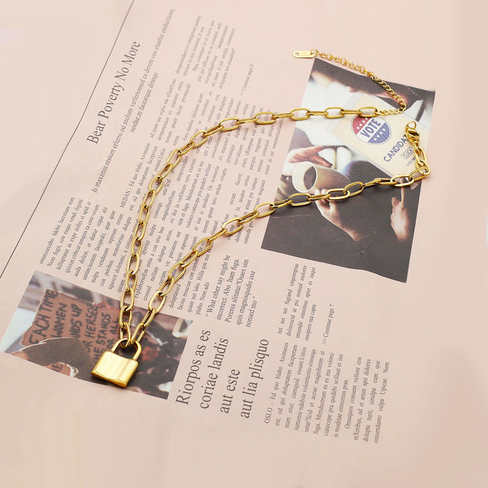 Transfronterizo europeo y americano Venta caliente vintage titanio acero cerradura colgante collar femenino punk estilo temperamento grueso cadena joyería 18K oro