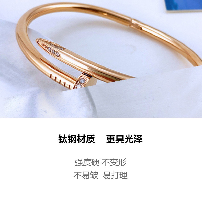 Estilo europeo y americano clásico transfronterizo acero de titanio oro rosa no se desvanece pulsera con forma de clavo celebridad de Internet pulsera de moda de lujo ligero mujer
